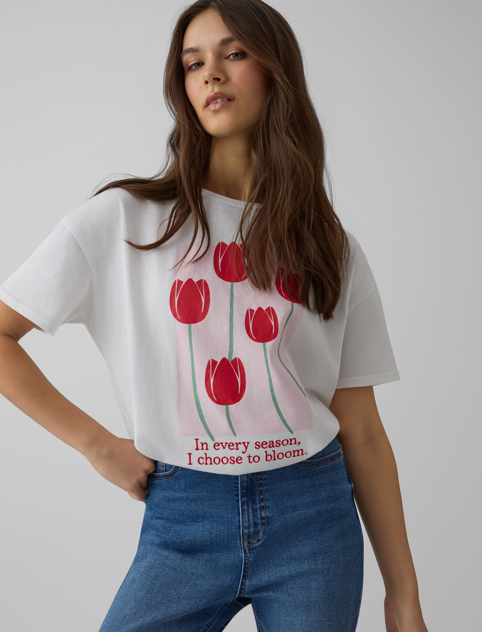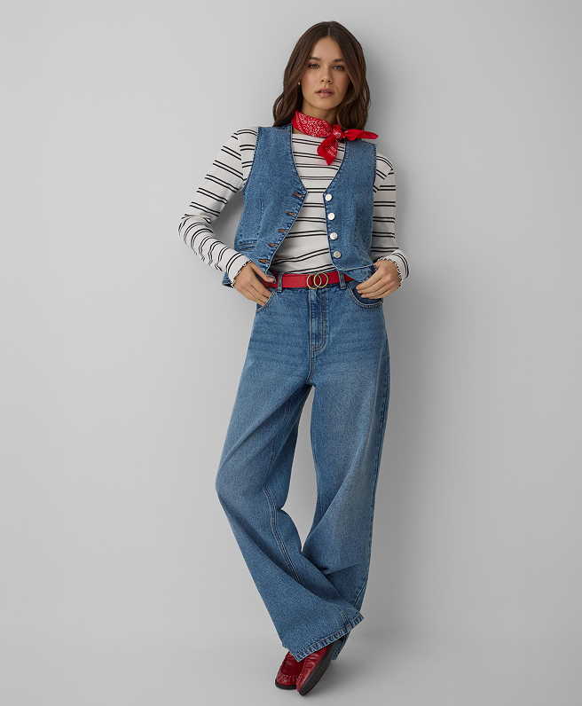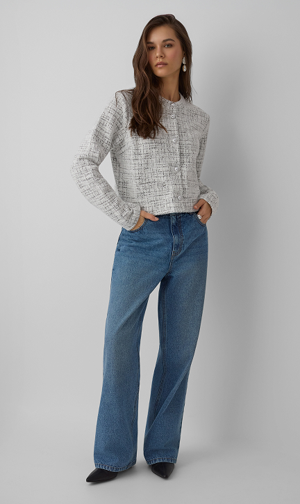 Zauważalny w kolekcji powrót do estetyki lat 90. to nie tylko ukłon w stronę nostalgii, ale przede wszystkim świadome nawiązanie do okresu, który charakteryzował się wyjątkową swobodą w modzie. Trend ten przejawia się w oversizowych bluzach, które świetnie sprawdzają się zarówno w casualowych stylizacjach, jak i w połączeniu z eleganckimi elementami garderoby. Wysokie spodnie z szerokimi nogawkami nie tylko nawiązują do tamtej epoki, ale także doskonale wpisują się w obecne trendy dotyczące wygody i uniwersalności. Crop topy, kolejny charakterystyczny element lat 90., zostały odświeżone i dostosowane do współczesnych potrzeb, oferując różnorodne możliwości stylizacji.