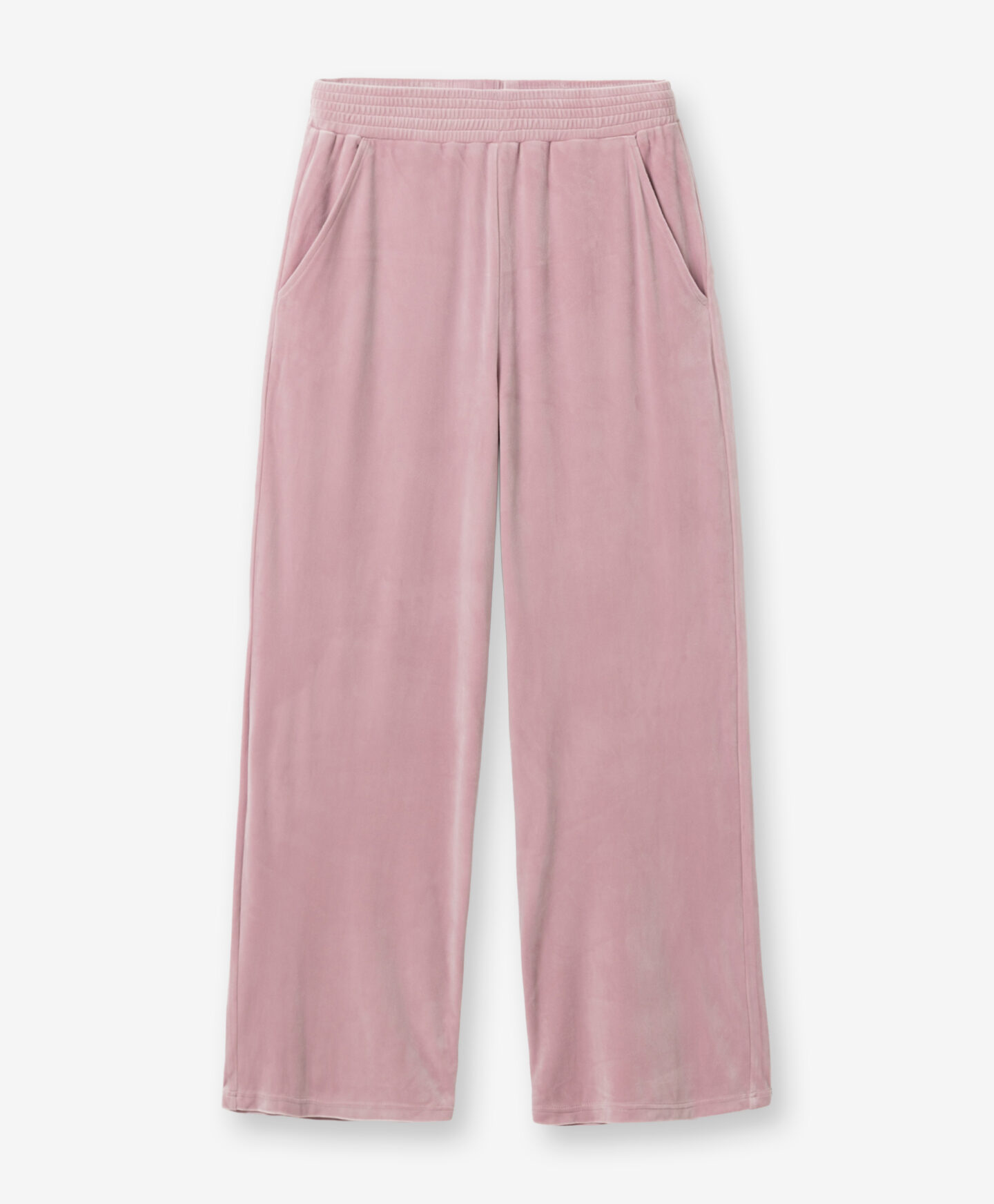 Aksominės rožinės kelnės – tai paprastumas ir elegancija viename. Plačios klešnės nevaržo judesių ir vizualiai pailgina kojas bei suteikia aprangai lengvumo. Minkštas, elastingas juosmuo puikiai priglunda prie liemens.