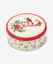 Raudona apvali skardinė dėžutė – tai klasikinis šventinis leidimas. Papuošta žavingu užrašu ir žiemos motyvais, ji suteikia išskirtinio žavesio laikant saldumynus ar riešutus. Laikui nepavaldus dizainas reiškia, kad jis puikiai dera tiek prie tradicinių, tiek prie modernių interjero detalių.