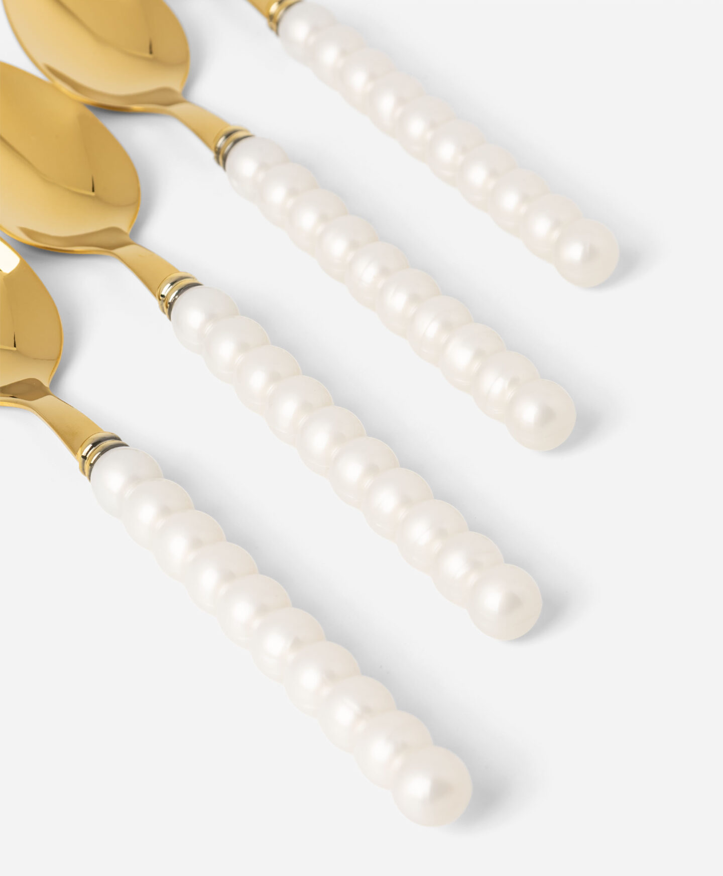 Arbatiniai šaukšteliai, 4 vnt., suteiks elegancijos bet kokiai arbatos pertraukėlei. Patogios rankenos, puoštos subtiliais perlais, suteikia rafinuotumo daugeliui stalo kompozicijų. Puikiai tinka kasdieniam naudojimui ir ypatingoms progoms, jie puikiai papildys bet kurį stalo indų rinkinį.