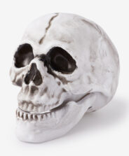 Balta kaukolė yra klasikinė Helovino dekoracija, kuri traukia dėmesį savo šiurpiu dizainu. Ji pagaminta iš plastiko, todėl yra lengva ir atspari pažeidimams. Ji idealiai tinka bauginančiai atmosferai sukurti. Ji puikiai tiks kaip pagrindinė dekoracija arba kaip didesnės kompozicijos dalis. Taip pat galima įsigyti juodą kaukolę.