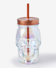 Balta kaukolės formos stiklinė skirta Helovino gerbėjams. Ji turi dangtelį su šiaudeliu, todėl galite ją pasiimti su savimi į kelionę arba gurkšnoti mėgstamą gėrimą patogiai įsitaisę namuose. Stiklinė tikrai padarys stulbinamą įspūdį ant stalo per Helovino vakarėlį. Tai taip pat gali būti originali dovana. Taip pat galima įsigyti žalią stiklinę.