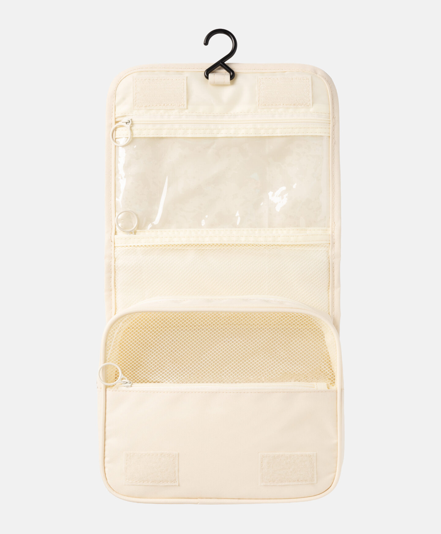 Šią baltą kosmetinę su pakaba būtina turėti keliaujant. Daugybė skyrių, kišenių ir elastingų dirželių užtikrina, kad viskas būtų savo vietoje. Kosmetinė pagaminta iš medžiagos, kurią lengva išlaikyti švarią.