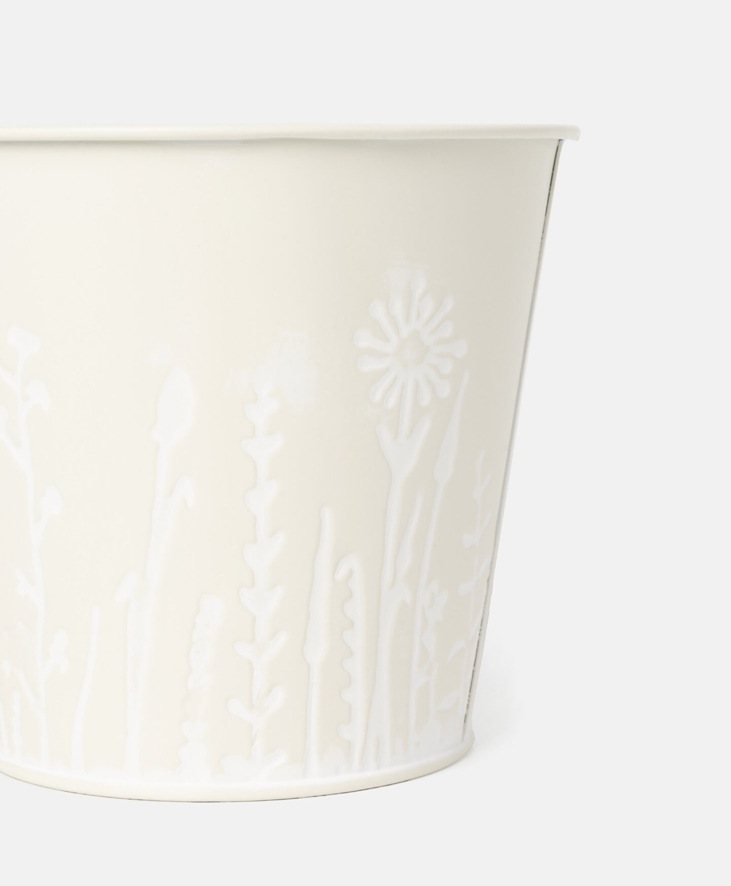 Baltas metalinis vazonas su raštu yra lengvas, tvirtas ir atsparus oro sąlygoms. Pavasariški raštai ant sienelių įneš gaivos jūsų terasai ar balkonui. Puikiai tinka mažiems augalams, daržovėms ar gėlėms sodinti. Vazoną lengva valyti ir prižiūrėti – siekdami išlaikyti jo blizgesį ir gražią išvaizdą, tiesiog nuvalykite drėgna šluoste. Galima rinktis iš keleto variantų.
