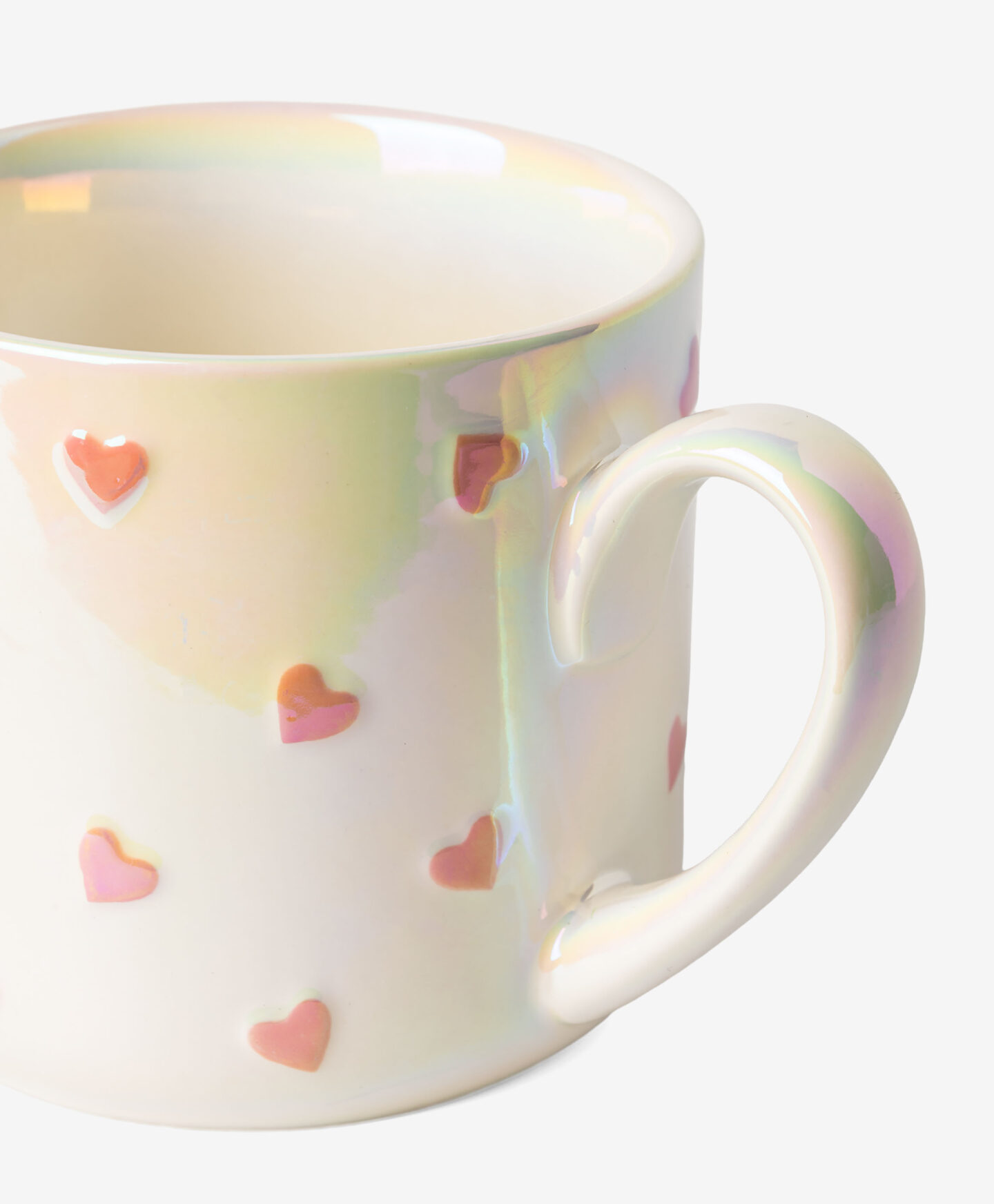 Baltas puodelis su širdelių motyvais ir holografiniu efektu išsiskiria iš kitų indų. Romantiško stiliaus puodelis puikiai tinka artėjančios Valentino dienos proga, mėgaujantis rytine kava ar arbata arba kaip unikali dovana mylimam žmogui. Pagamintas iš patvaraus porceliano, atsparus kasdieniam naudojimui, lengvai prižiūrimas. Galima rinktis iš dviejų spalvų.