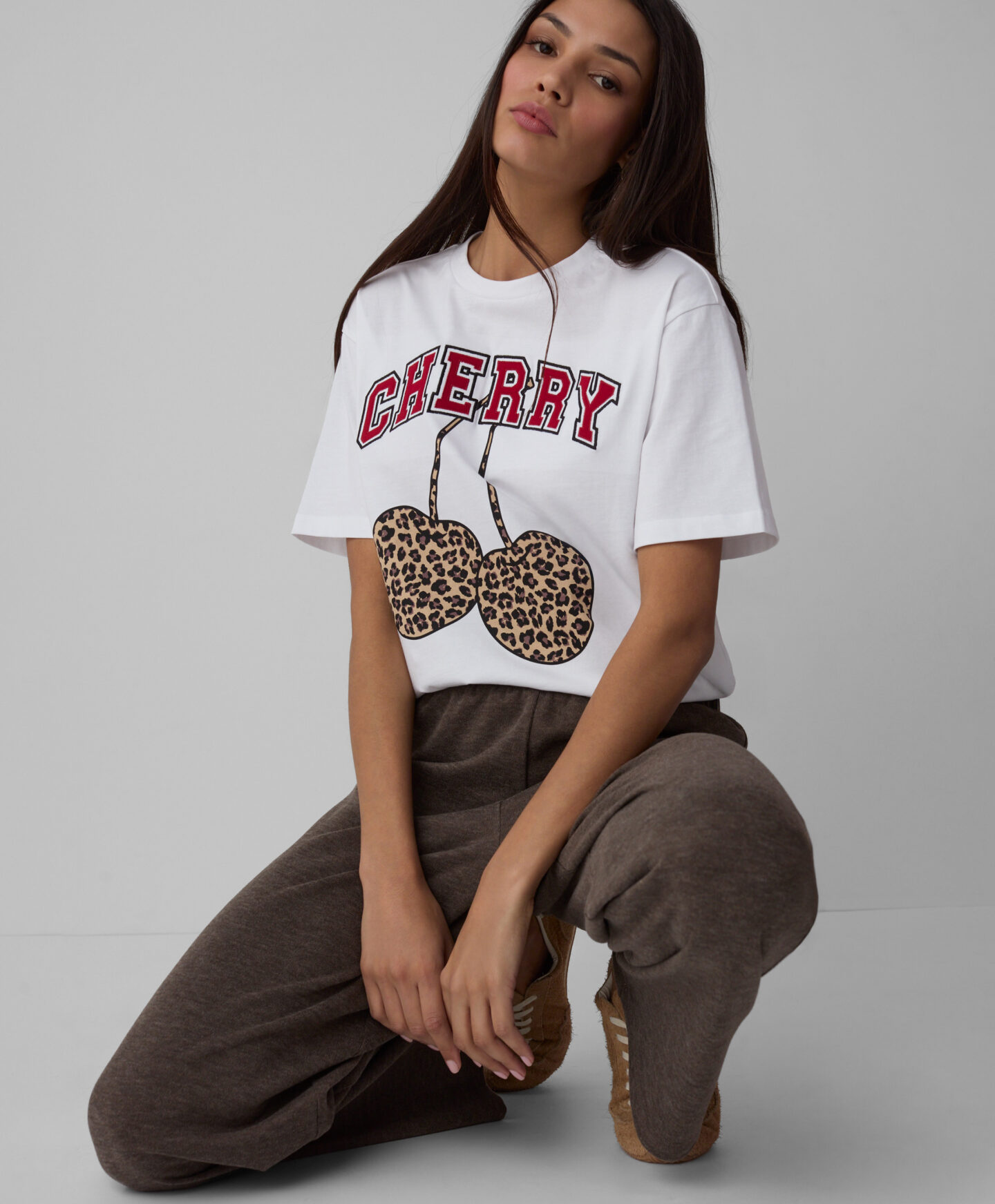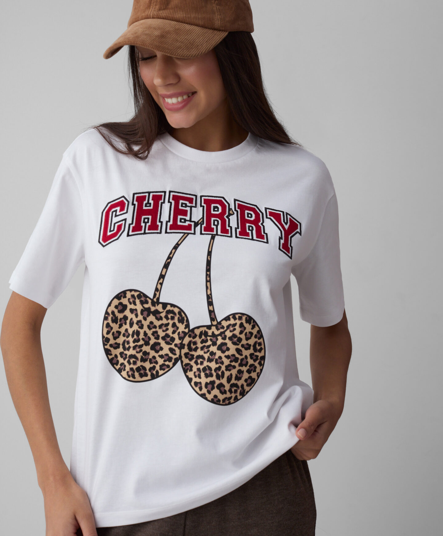 Balti marškinėliai, pasiūti iš 100 % medvilnės, su leopardo raštu, suteikia charakterio bet kokiai aprangai. Natūrali medžiaga yra švelni odai ir užtikrina visišką komfortą visą dieną. Juos galite derinti su sportinėmis kelnėmis arba su elegantiškais aksesuarais, kad atrodytumėte rafinuočiau.