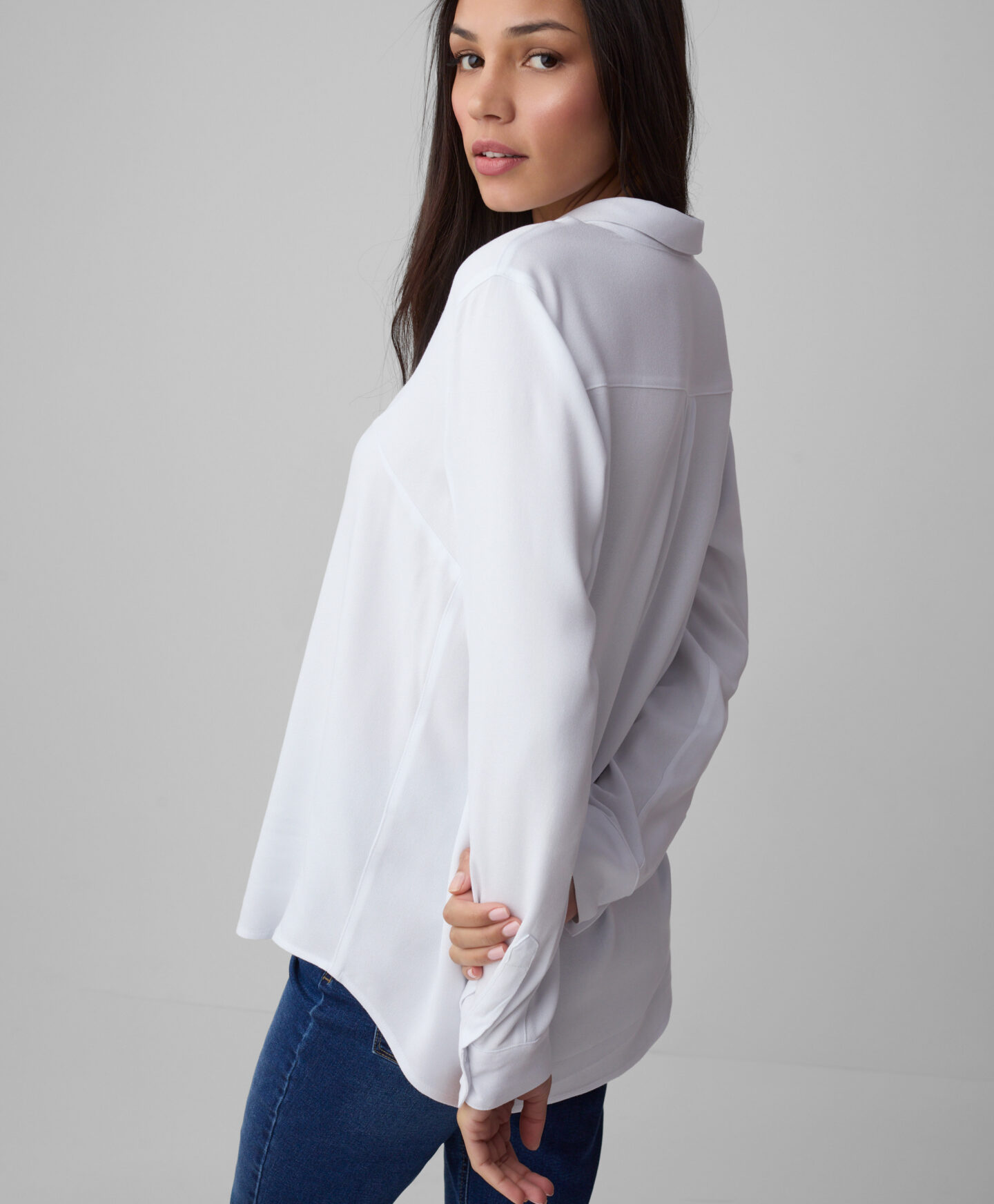 Balti marškiniai, pasiūti iš 100 % viskozės, yra patogūs ir nepavaldūs laikui. Jie yra minkšti, pralaidūs orui ir malonūs liesti. Klasikinis modelius ir elegantiška balta spalva daro juos neįtikėtinai universaliu garderobo elementu. Minimalistinis dizainas puikiai tinka tiek prie laisvalaikio, tiek prie oficialesnės aprangos.