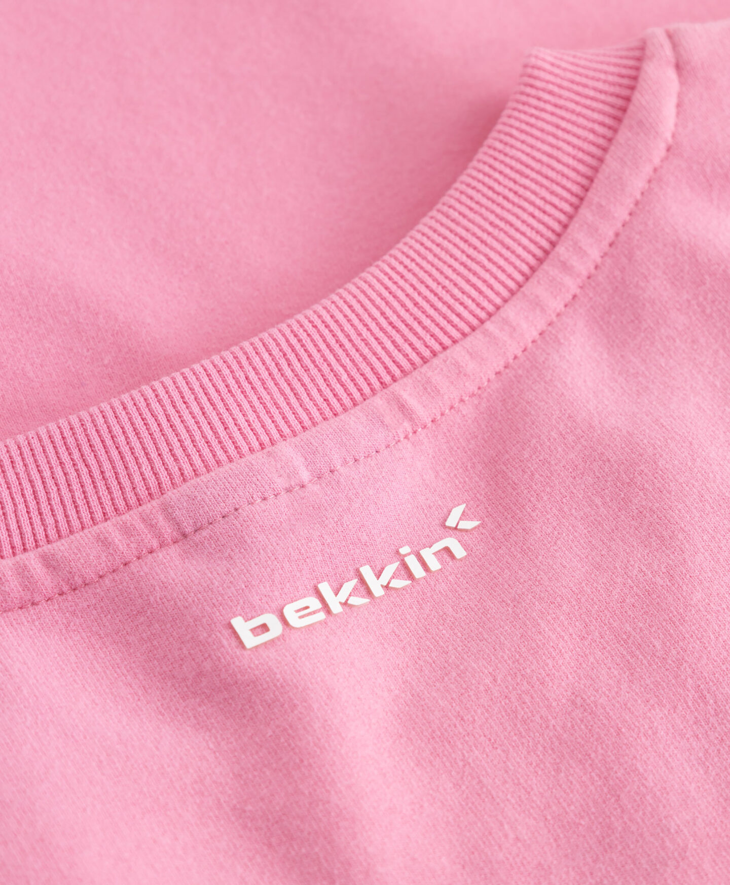 BEKKIN rožiniai vaikiški marškinėliai puikiai tinka laisvalaikio stiliui. Laisvas modelis leidžia nevaržomai judėti ir yra itin patogus. Plačios rankovės suteikia marškinėliams modernumo. Didelis medvilnės kiekis sudėtyje užtikrina pralaidumą orui. Šie marškinėliai puikiai tinka kasdieniam dėvėjimui ar veiklai lauke. Universali rožinė spalva puikiai dera su įvairia apranga – nuo laisvalaikio iki elegantiškesnės. Taip pat galima įsigyti šortus.