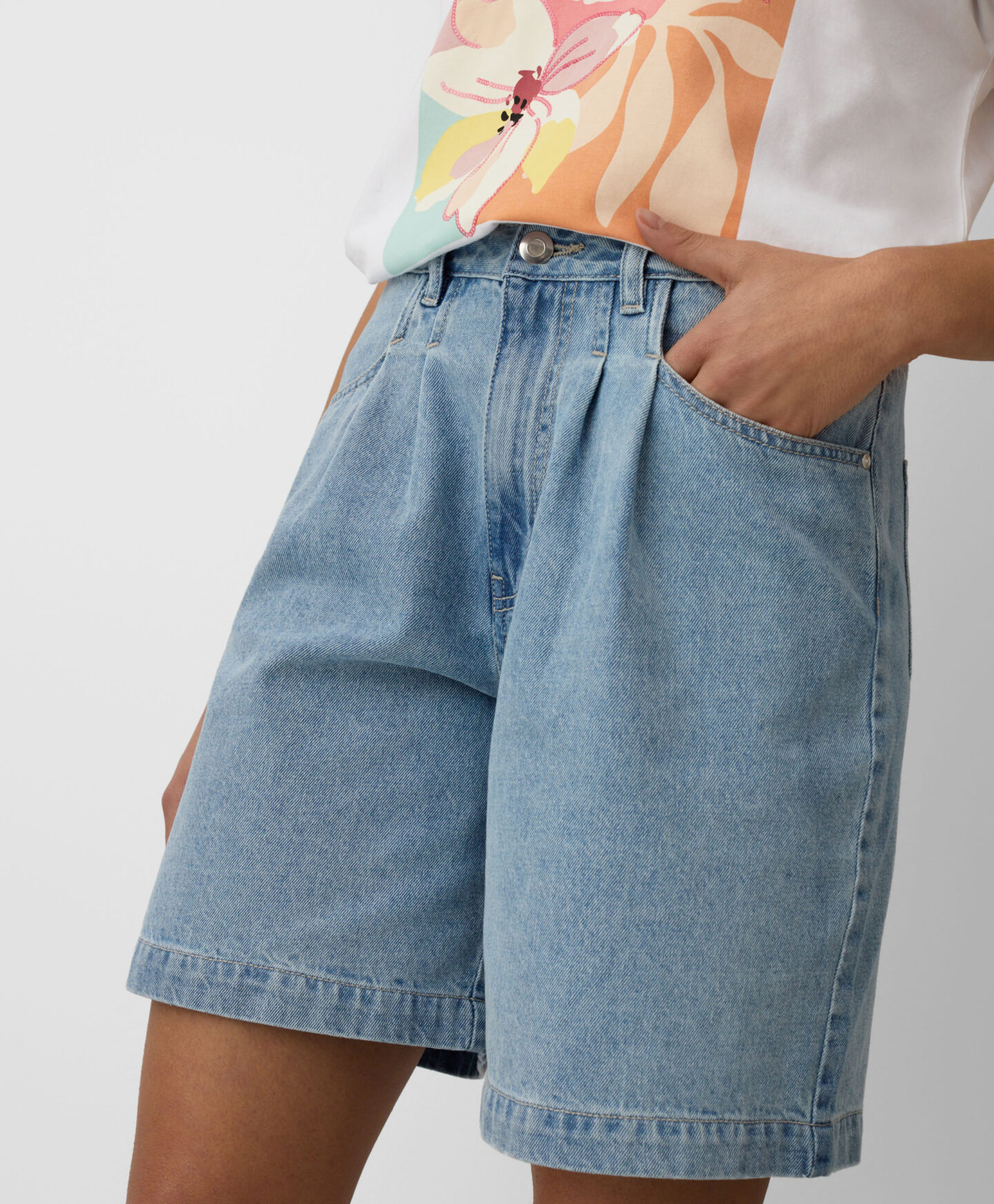 Šie 100 % medvilniniai Bermudų šortai – puikus pasirinkimas ieškantiems komforto ir klasikinio stiliaus šiltomis dienomis. Laisvas siluetas užtikrina visišką judėjimo laisvę, universalus ilgis tinka visiems kūno tipams. Laiko patikrinta džinsinė medžiaga suteikia galimybę kurti įvairius stilingus derinius.