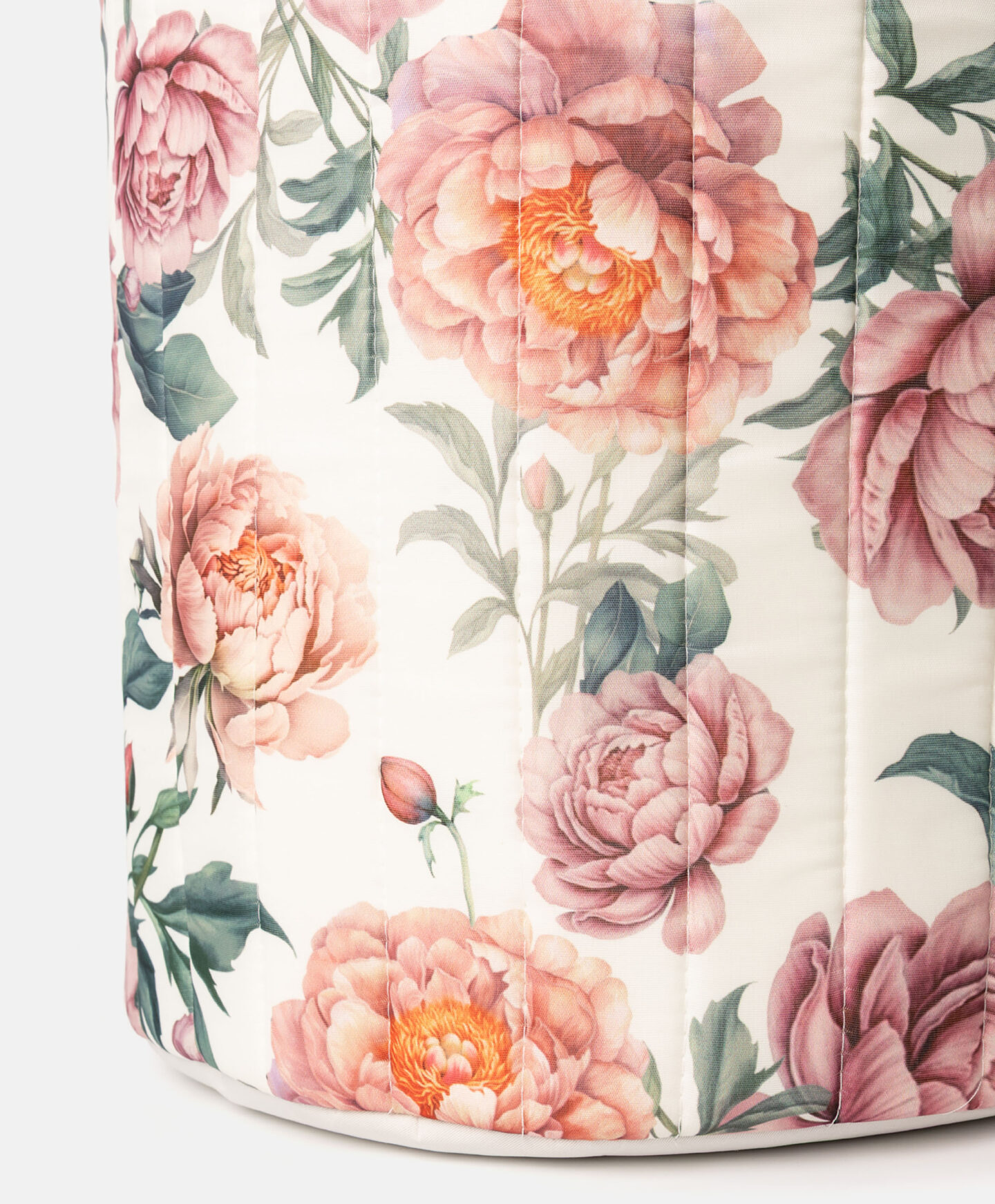 Gėlių raštais margintas krepšys padeda tvarkyti erdvę ir gražiai atrodo jūsų interjere. Jame galima laikyti ir tekstilės gaminius, pavyzdžiui, antklodes ir pagalves, ir vaikiškus žaislus, pavyzdžiui, mašinėles, figūrėles ar pliušinius žaislus. Pavasariškas žydinčių bijūnų raštas ir pastelinės spalvos suteiks kambariui lengvumo ir gaivumo.