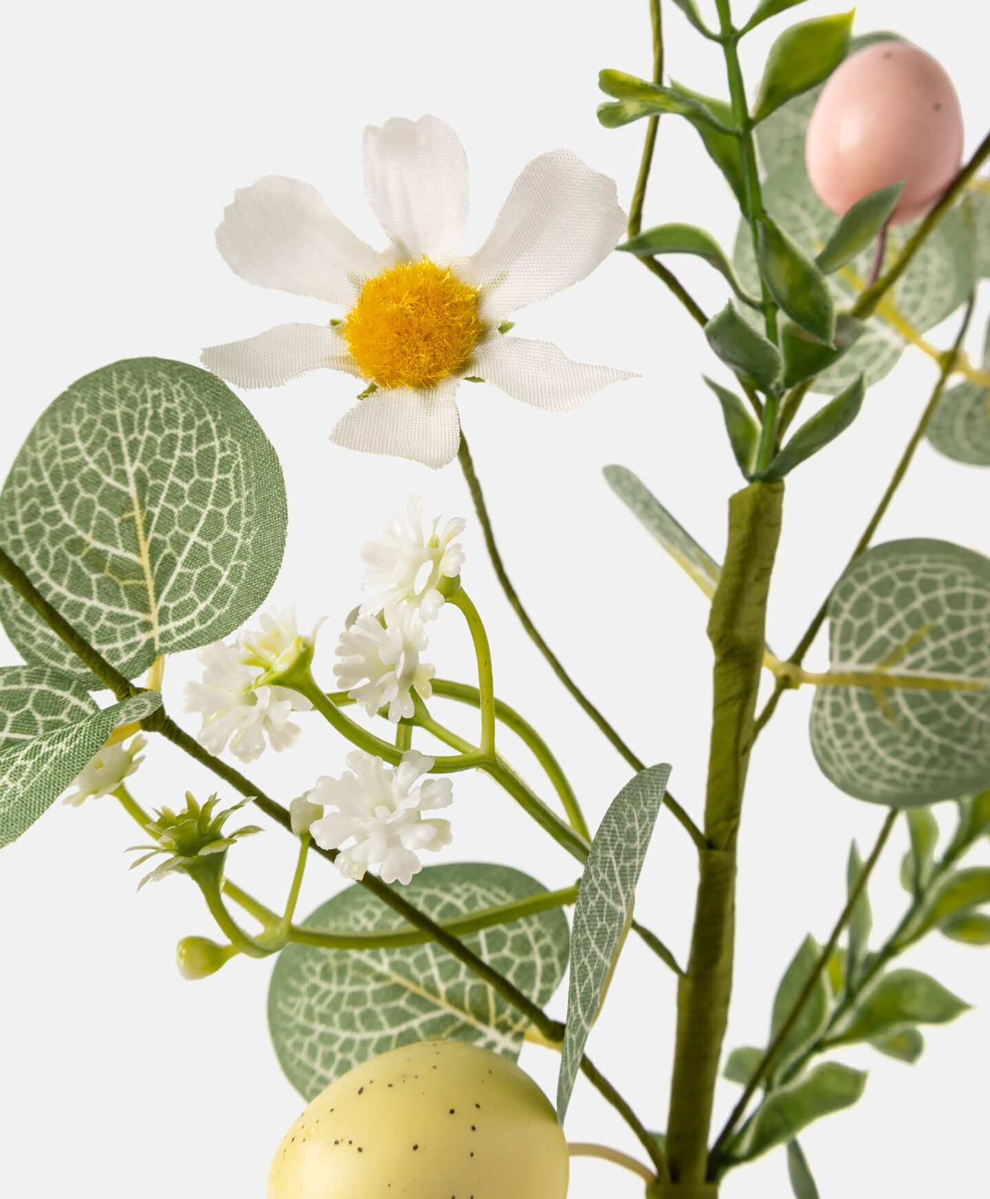 Ši dekoratyvinė šakelė su spalvotais margučiais ir gėlėmis – tai puikus sprendimas tiems, kurie ieško paruoštos įspūdingos dekoracijos. Galite ją panaudoti kurdami didesnę pagrindinę dekoraciją arba įkišti į vazoną ir suteikti namų augalams pavasariškos nuotaikos. Taip pat puikiai tinka naudoti kaip puokštės dalį arba pamerkti į vazą atskirai. Ji suteiks pavasariškos nuotaikos jūsų svetainei!