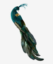 Didelė turkio spalvos povo plunksna yra ryškus akcentas, kuris pakeis Kalėdų eglutės išvaizdą. Ilgos plunksnos, mirguliuojančios giliomis spalvomis, suteikia kompozicijoms įspūdingą charakterį. Ši dekoracija iš karto patraukia dėmesį, suteikdama interjerui egzotikos ir šventinio spindesio.