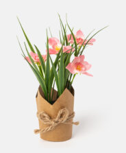 Dirbtinės rožinės gėlės popieriniame indelyje – puikus sprendimas ieškantiems patvarios, paruoštos naudoti dekoracijos. Sodrios spalvos ir tikslios detalės sukuria gaivų, gyvybingą vaizdą. Galima rinktis iš įvairių dizainų.