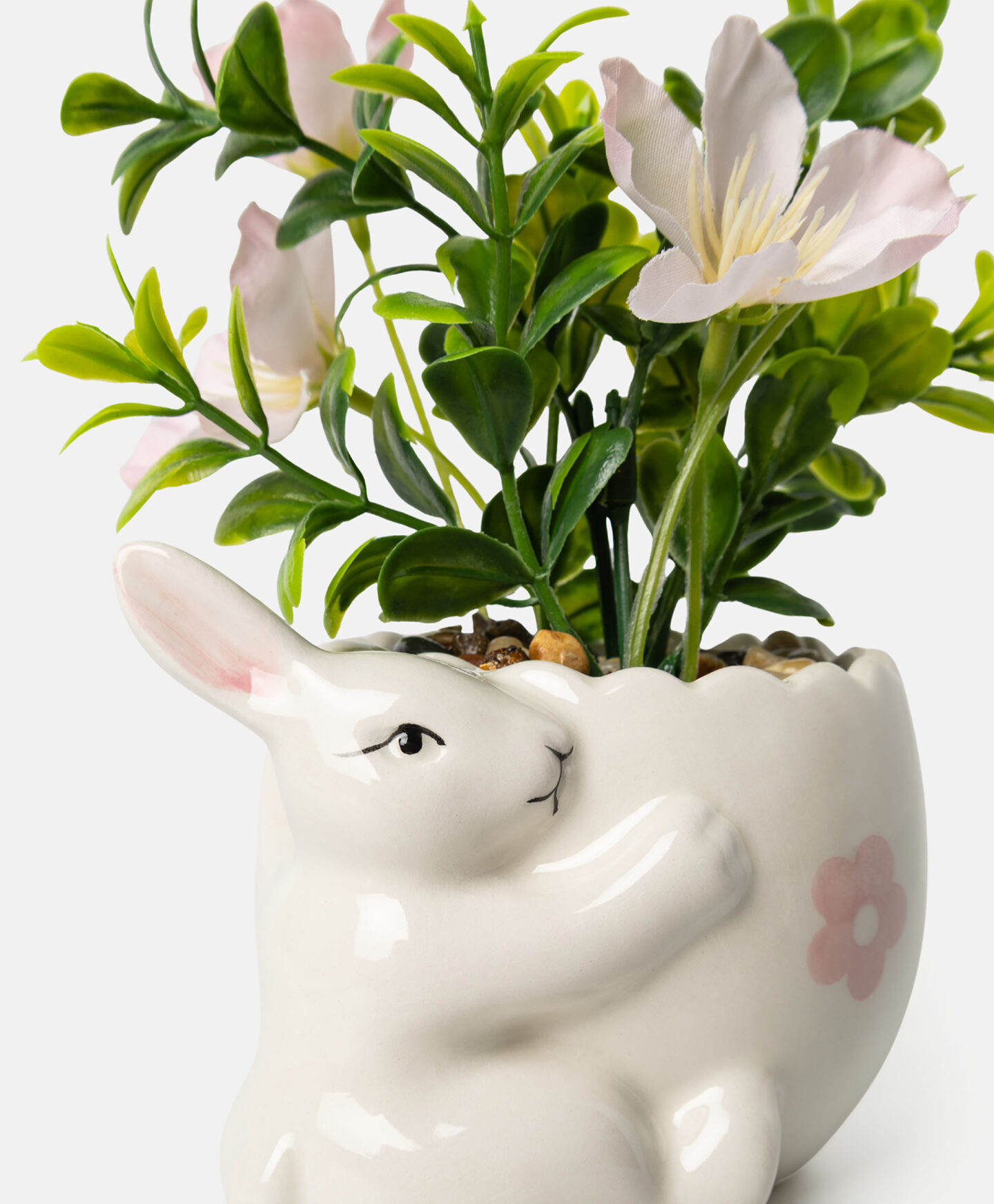 Dirbtinis augalas dekoratyviniame vazone su 3D kiškučiu – estetiška bet kokio interjero puošmena. Jis ne tik suteikia jūsų namams pavasariško dvelksmo, bet ir ilgai išlaiko gyvybingą žalumą, nereikalaudamas specialios priežiūros ar laistymo. Tai puiki dovanos idėja tiems, kurie linkę pamiršti augalų priežiūrą.