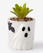 Dirbtinis augalas vaiduoklio formos vazonėlyje – tai puiki vaiduoklių šventės dekoracija. Linksmas Helovino motyvų įkvėptas vazonėlio dizainas suteiks interjerui išskirtinumo. Nereikia rūpintis dirbtinio augalo priežiūra ir jis džiugins jus visą sezoną. Tai puikus sprendimas tiems, kurie nori greitai ir efektyviai papuošti namus Helovinui.