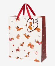 Dovanų maišelis su žavingais šuniukų motyvais ir širdelės formos etikete – tai žavus būdas unikaliai supakuoti dovanas. Jis puikiai tinka bet kokia proga – nuo gimtadienių ir švenčių iki mažų dovanėlių gyvūnų mylėtojams. Dėl nedidelės etiketės, galite papildyti dovaną asmeniniu akcentu.