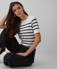 Dryžuota palaidinė trumpomis rankovėmis yra klasikinis garderobo elementas. Ji puikiai tinka pereinamuoju metų laiku. Klasikinis dryžuotas raštas puikiai derės prie daugumos jūsų drabužių. Trumpos rankovės suteikia daugybę stiliaus variantų – galite dėvėti ją vieną arba derinti su švarkeliu. Universalus modelis puikiai prisitaiko prie įvairių kūno formų. Palaidinę lengva prižiūrėti, ji išlaiko spalvą ir formą net po daugelio skalbimų.