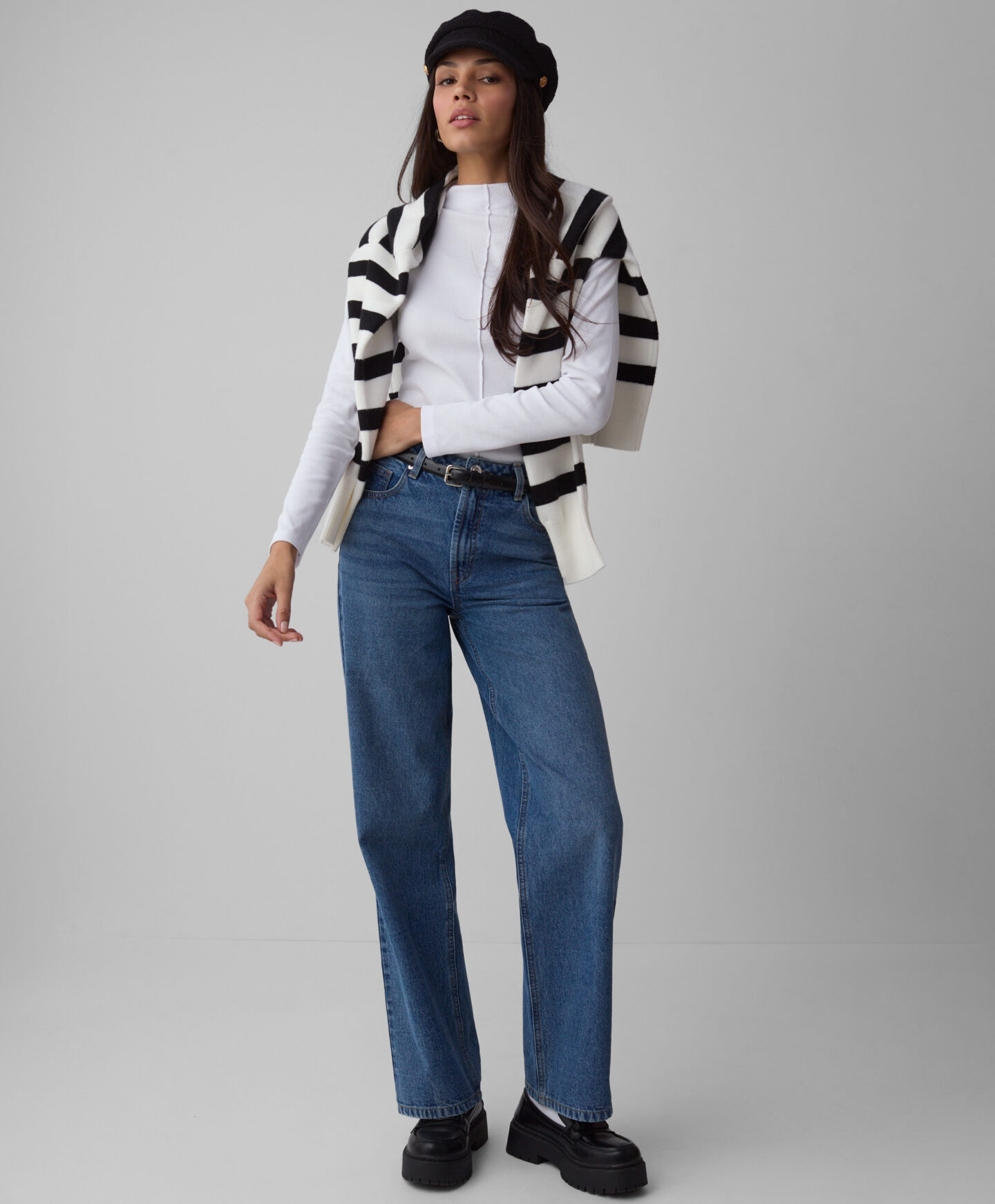 Dryžuoti balti marškinėliai yra minkšti, pralaidūs orui ir malonūs dėvėti. Dėl didelio medvilnės kiekio sudėtyje tai idealus pasirinkimas kasdienai. Marškinėlių priekyje esantys dekoratyviniai dygsniai pabrėžia unikalų dizainą ir traukia akį. Galima rinktis iš dviejų spalvų.