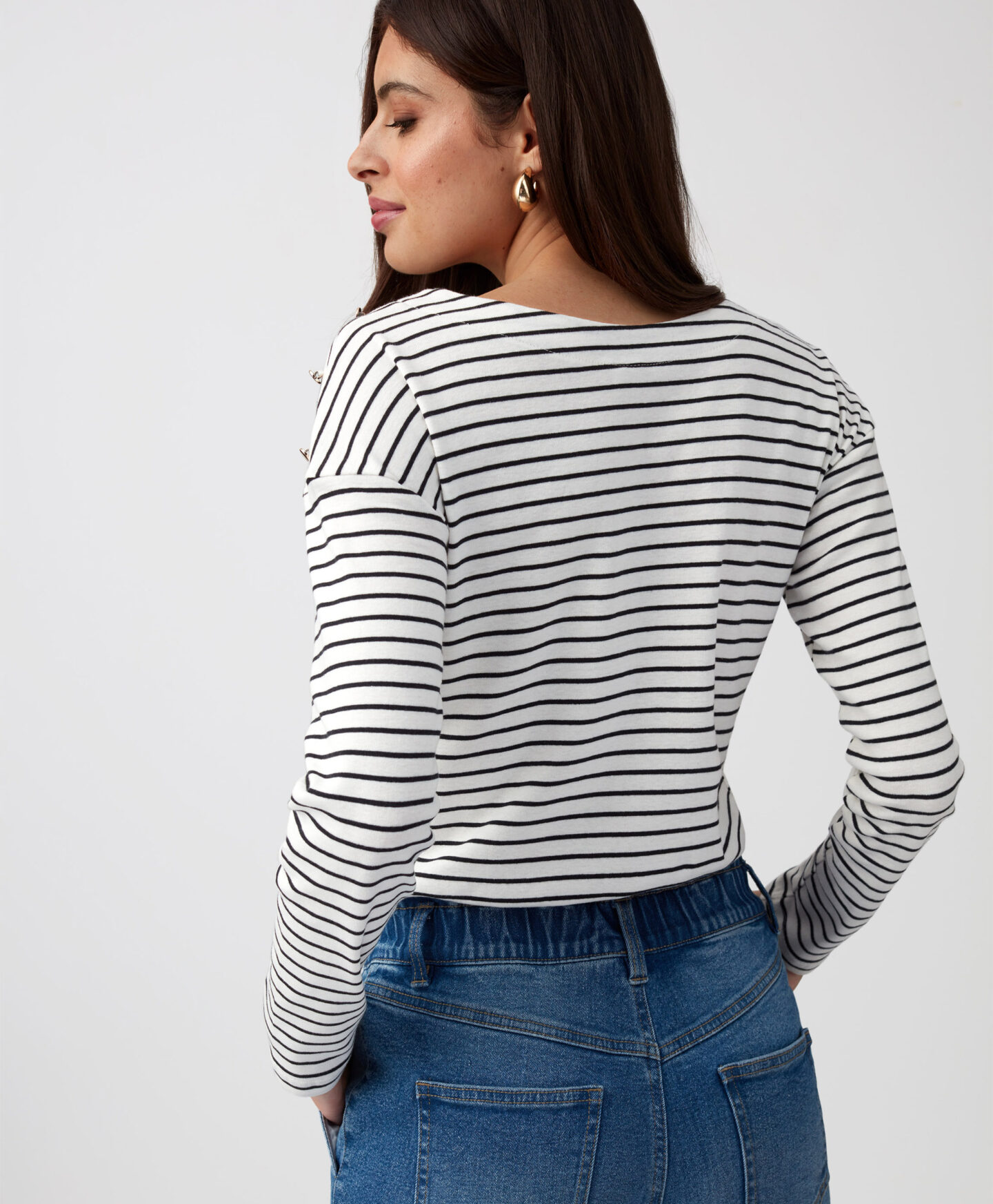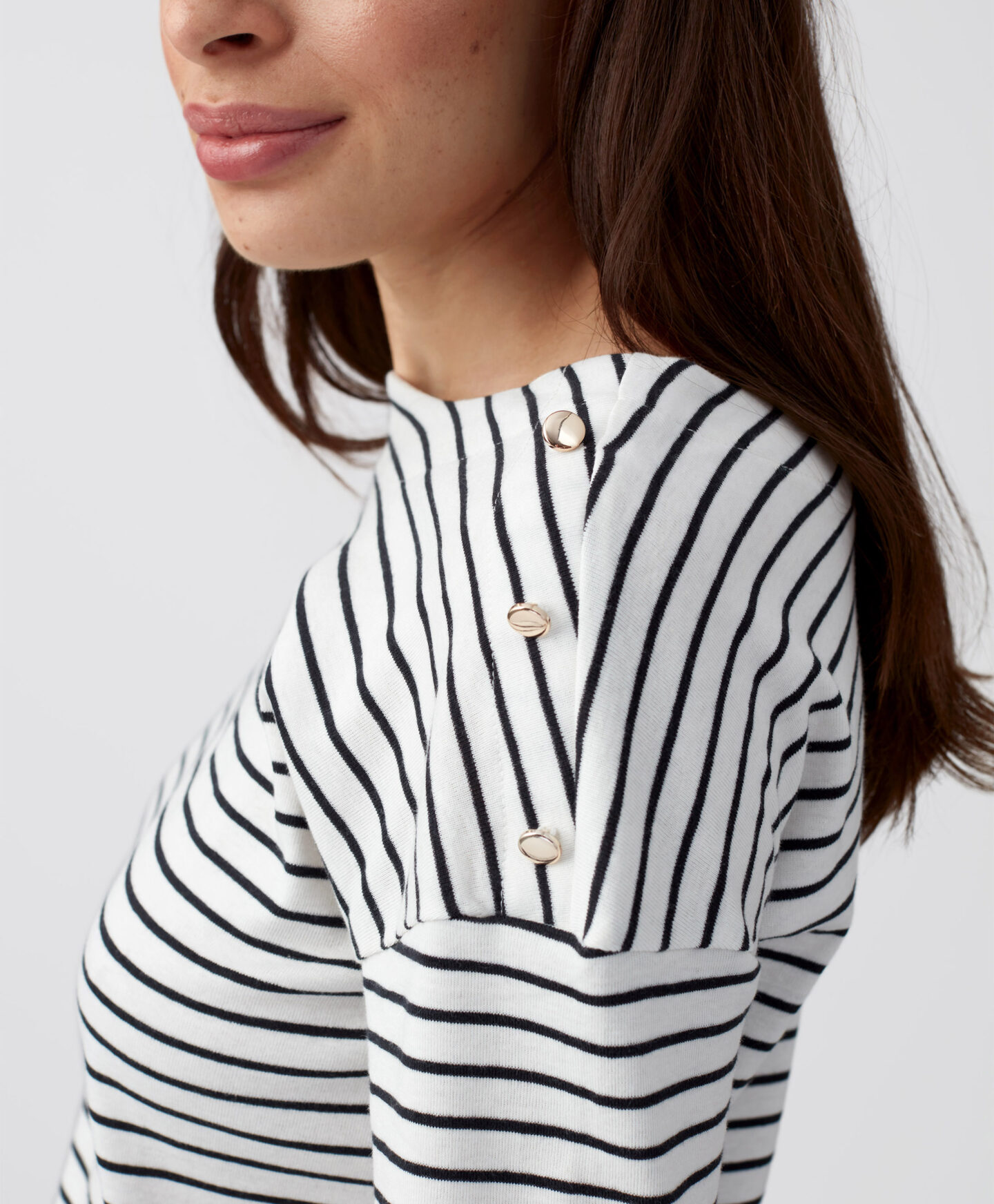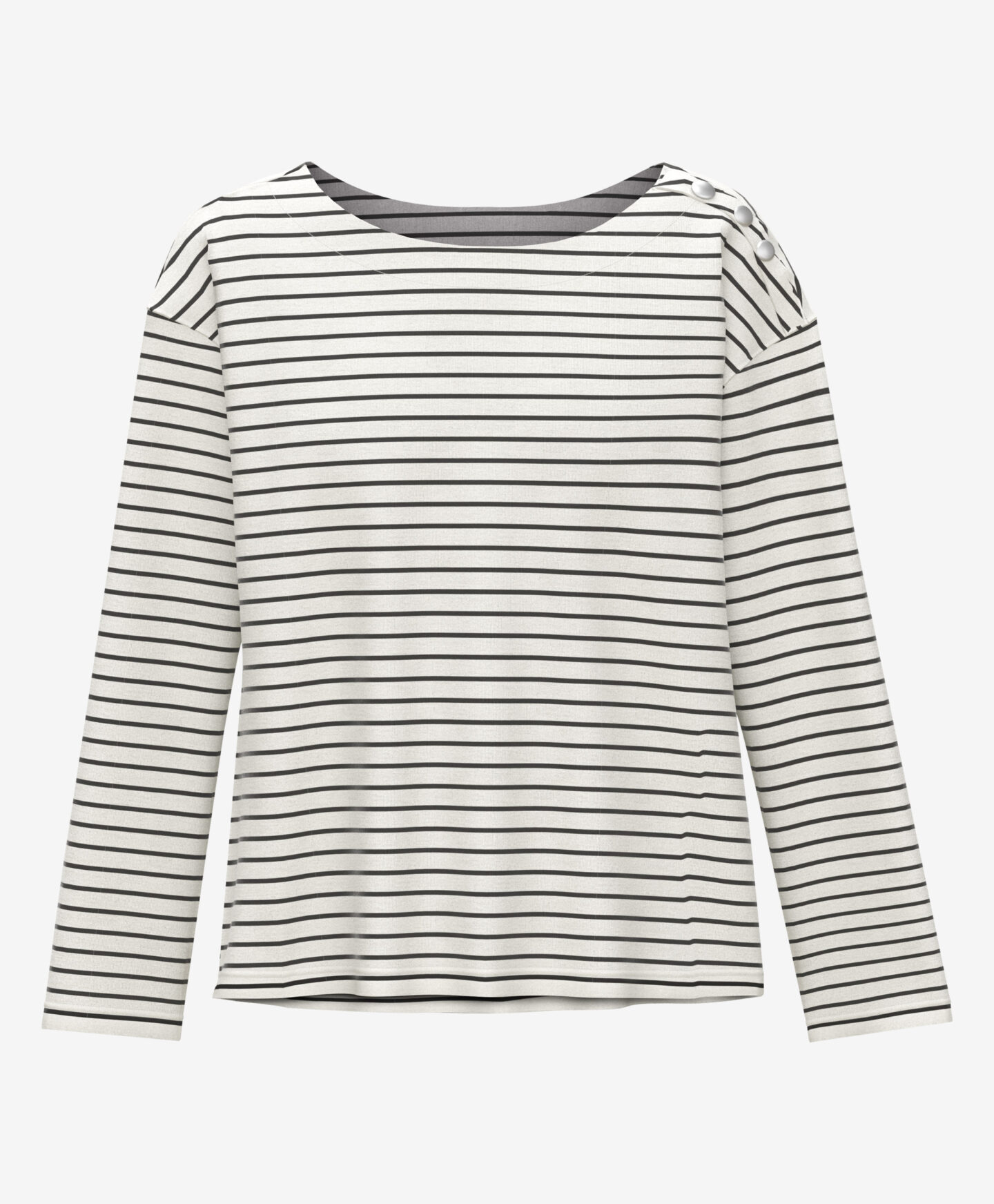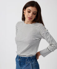 Dryžuoti marškinėliai, pasiūti iš 100 % medvilnės, ilgomis rankovėmis puikus pasirinkimas vėsesnėmis dienomis. Dryžuotas raštas suteikia savitumo, o švelni medvilnė užtikrina patogų kasdienį dėvėjimą. Jie puikiai tinka prie laisvalaikio aprangos, puikiai dera su džinsais ar sijonais.