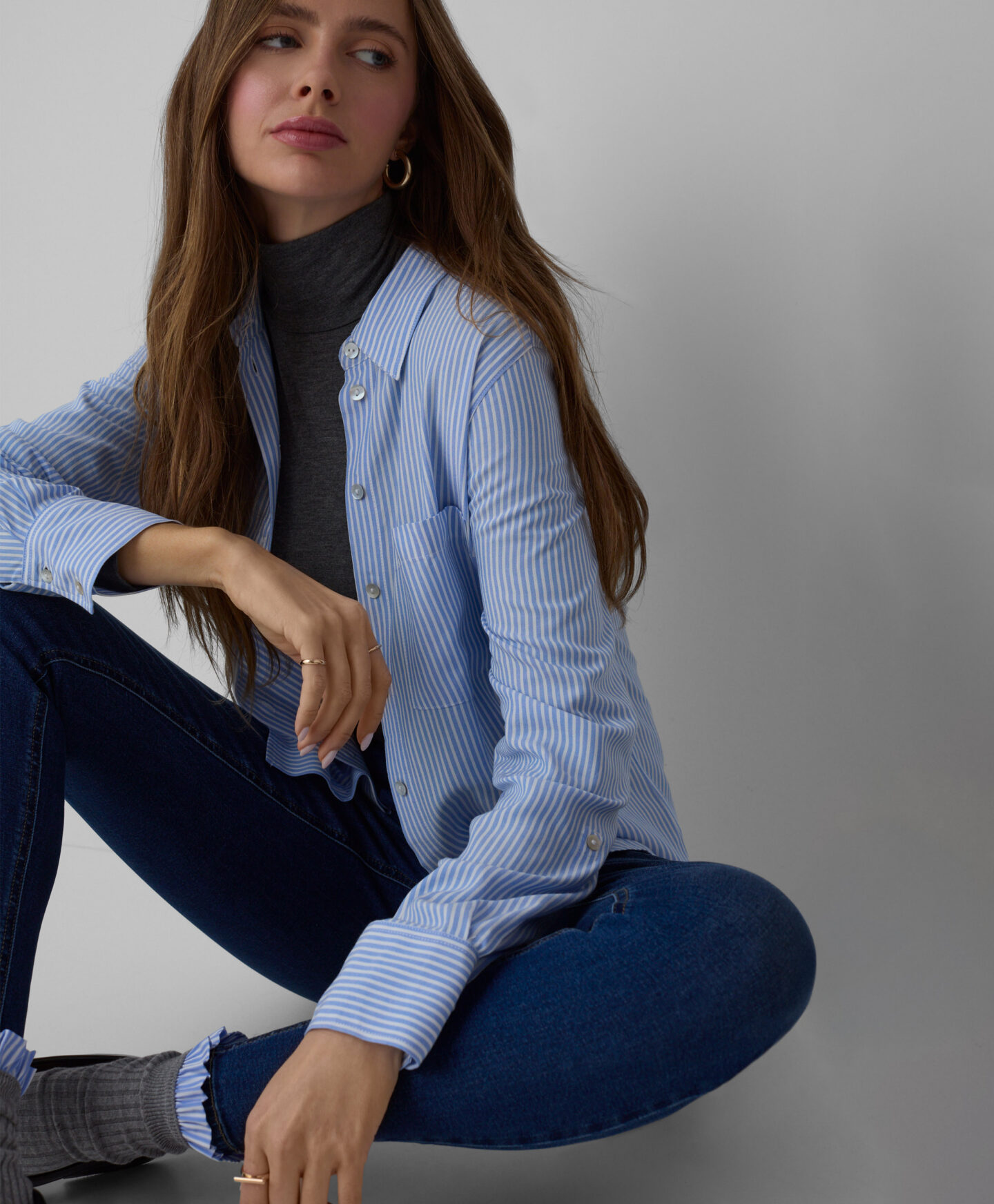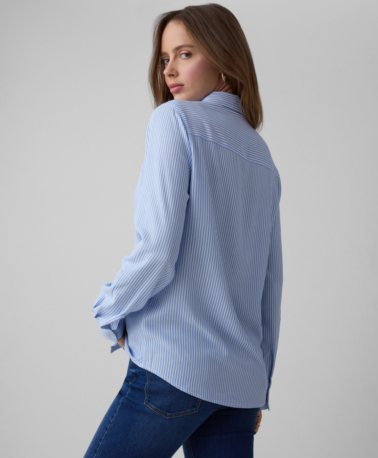 Dryžuoti marškiniai, pasiūti iš 100 % viskozės, su kišene, puikiai papildys jūsų garderobą. Universalus raštas puikiai atrodys tiek su elegantiškomis kelnėmis, tiek su džinsais. Dėl savo minkštumo, lengvumo ir pralaidumo orui žinomos viskozės drabužiai bus patogūs dėvėti ir puikiai prisitaikys prie jūsų figūros.