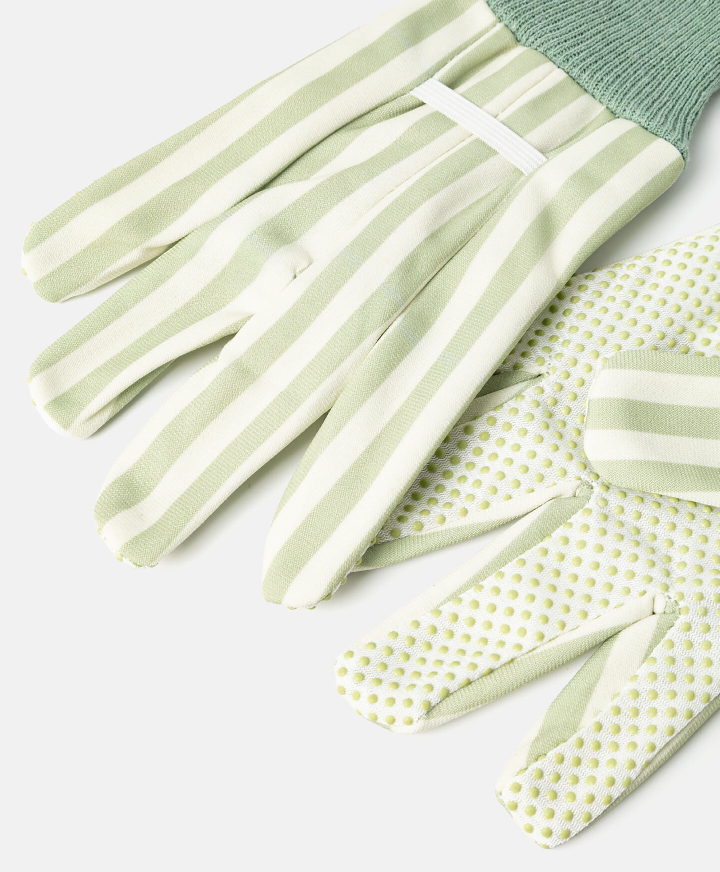 Dryžuotos sodo pirštinės – nepakeičiamas aksesuaras sode, siekiant apsaugoti jautrią rankų odą. Puikiai priglunda, yra patogios ir nevaržo. Pagamintos iš tvirtų medžiagų, saugo nuo spyglių ir nešvarumų, tekstūruotas paviršius leidžia tvirtai laikyti sodo įrankius. Pirštines lengva prižiūrėti. Galima rinktis iš įvairių raštų variantų.