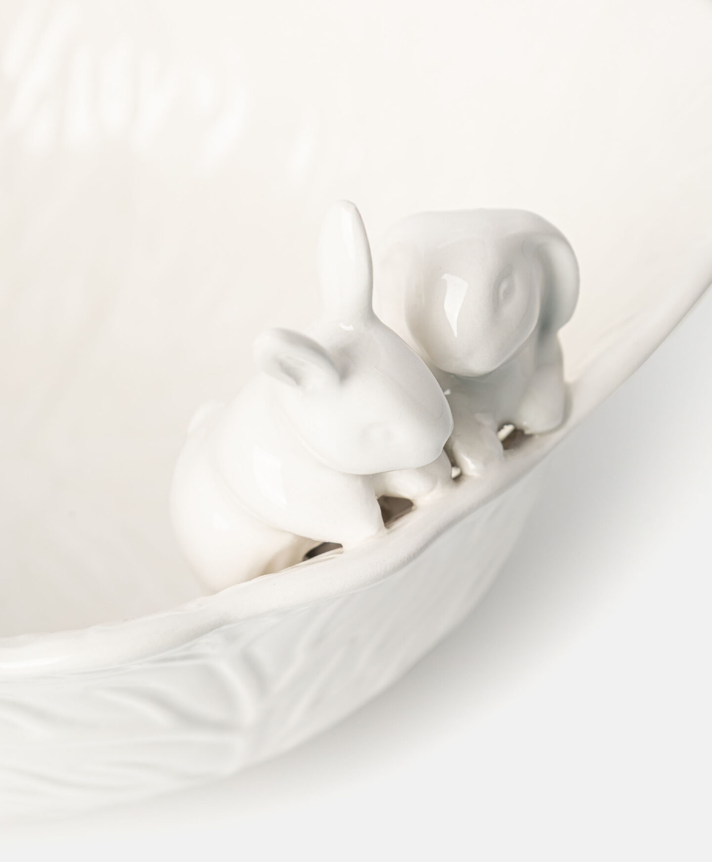 Kopūsto formos dubuo su 3D kiškučiu viduje žaismingai papuoš bet kokį patiekalą. Jis puikiai tinka įvairioms salotoms, užkandžiams, vaisiams ar užkandžiams patiekti. Tinka tiek kasdieniam naudojimui, tiek didesniems šeimos susibūrimams. Dolomitas yra atsparus įbrėžimams ir lengvai valomas.