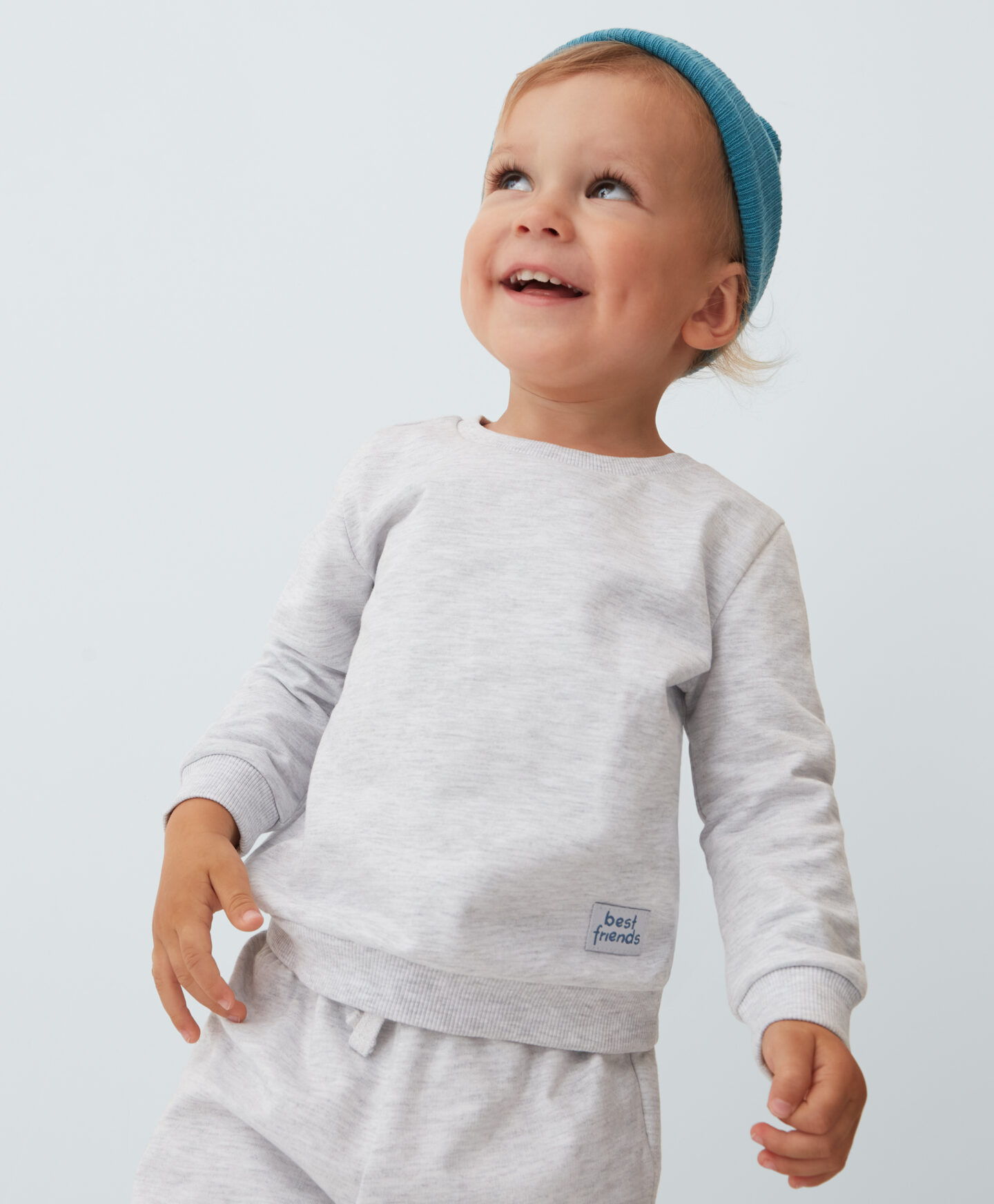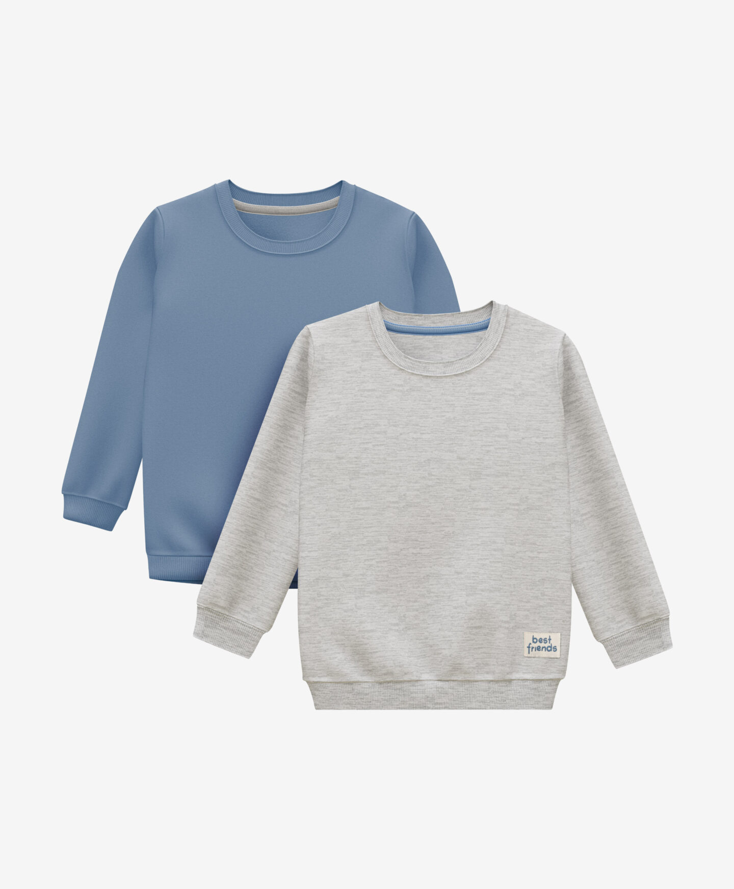 Džemperis mažyliams, pasiūtas iš 100 % medvilnės, 2 vnt., puikiai derės prie kelnių iš pasiūlymo. Džemperis yra minkštas, šiltas, su elastingais rankogaliais. Dėl prislopintų spalvų ir švelnių detalių džemperis yra labai universalus ir tinka prie daugelio vaiko garderobo elementų. Toks komplektas turėtų būti kiekvieno mažylio spintoje!