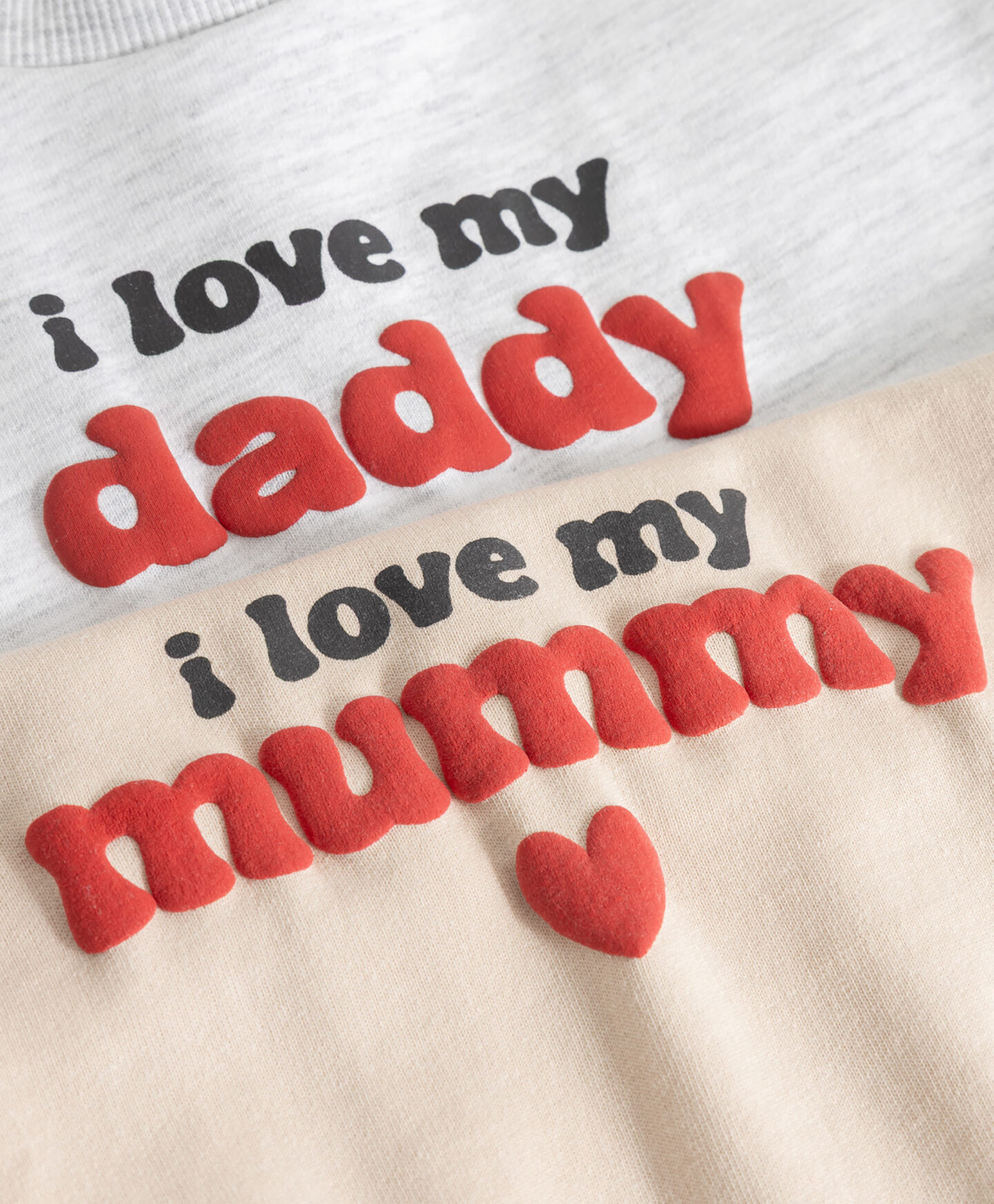 Džemperis mažyliams, pasiūtas iš 100 % medvilnės, 2 vnt., su užrašais Valentino dienos tematika, puikiai tinka patiems mažiausiems šios šventės gerbėjams. Idealiai tinka švęsti pirmąją Valentino dieną, o dėl minkštos, natūralios medžiagos suteikia patogumo bei puikiai tinka jautriai mažylio odelei nuo pat pirmųjų gyvenimo dienų.