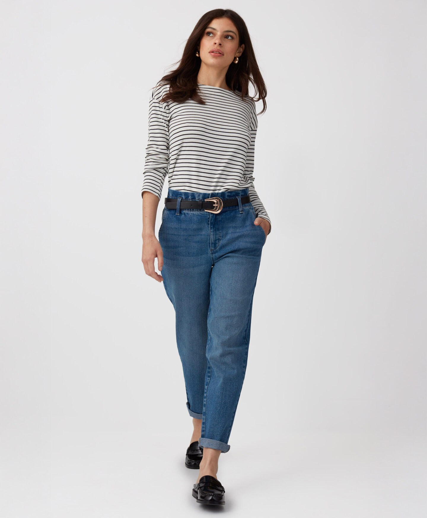 Džinsai aukštu liemeniu pabrėžia siluetą. Dėl aukšto liemens ir susegimo jie suteikia elegancijos bet kokiai aprangai. Puikiai tinka tiek laisvalaikiui, tiek iškilmingesnėms progoms, kai norite suderinti gerą stilių ir patogumą.