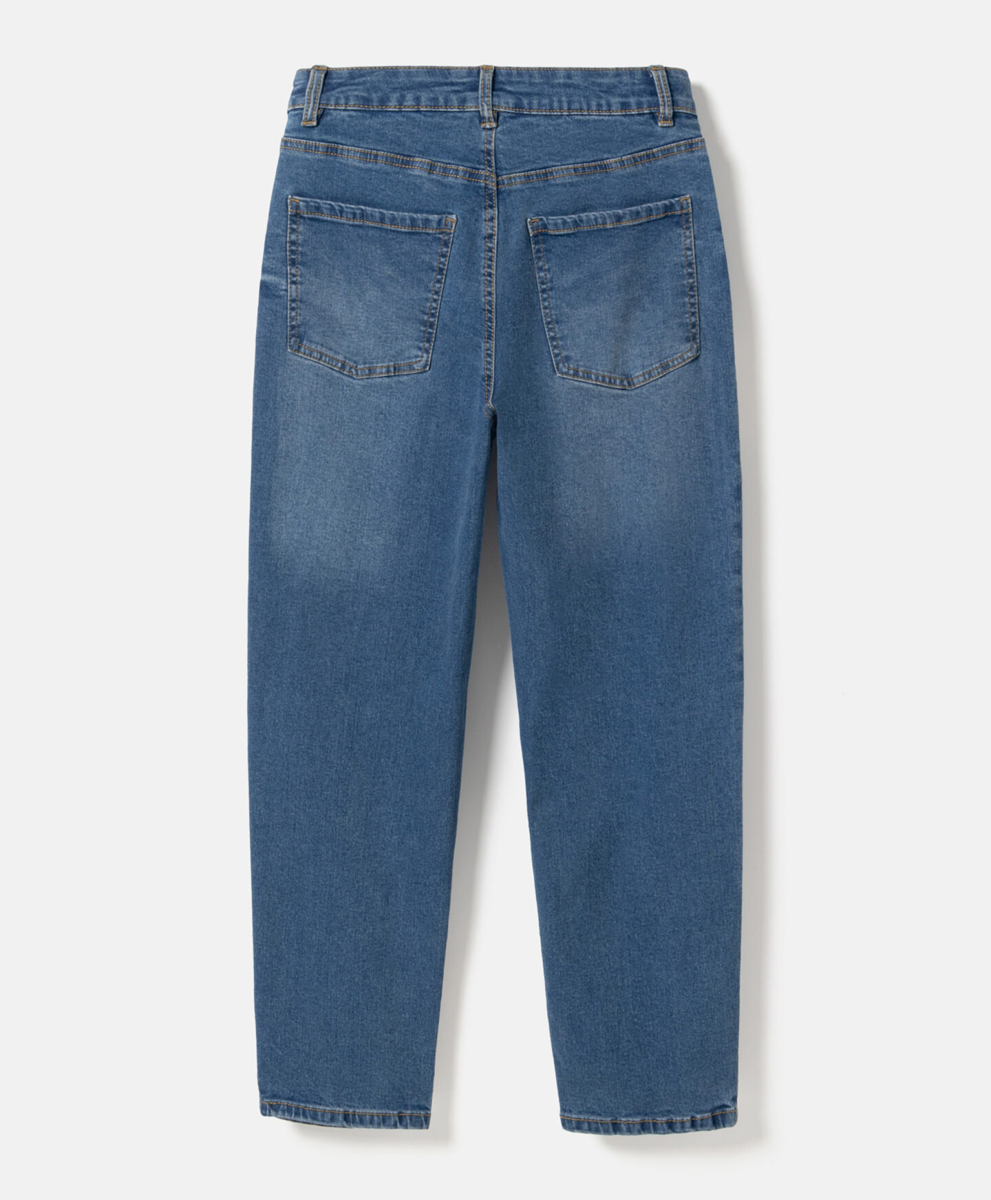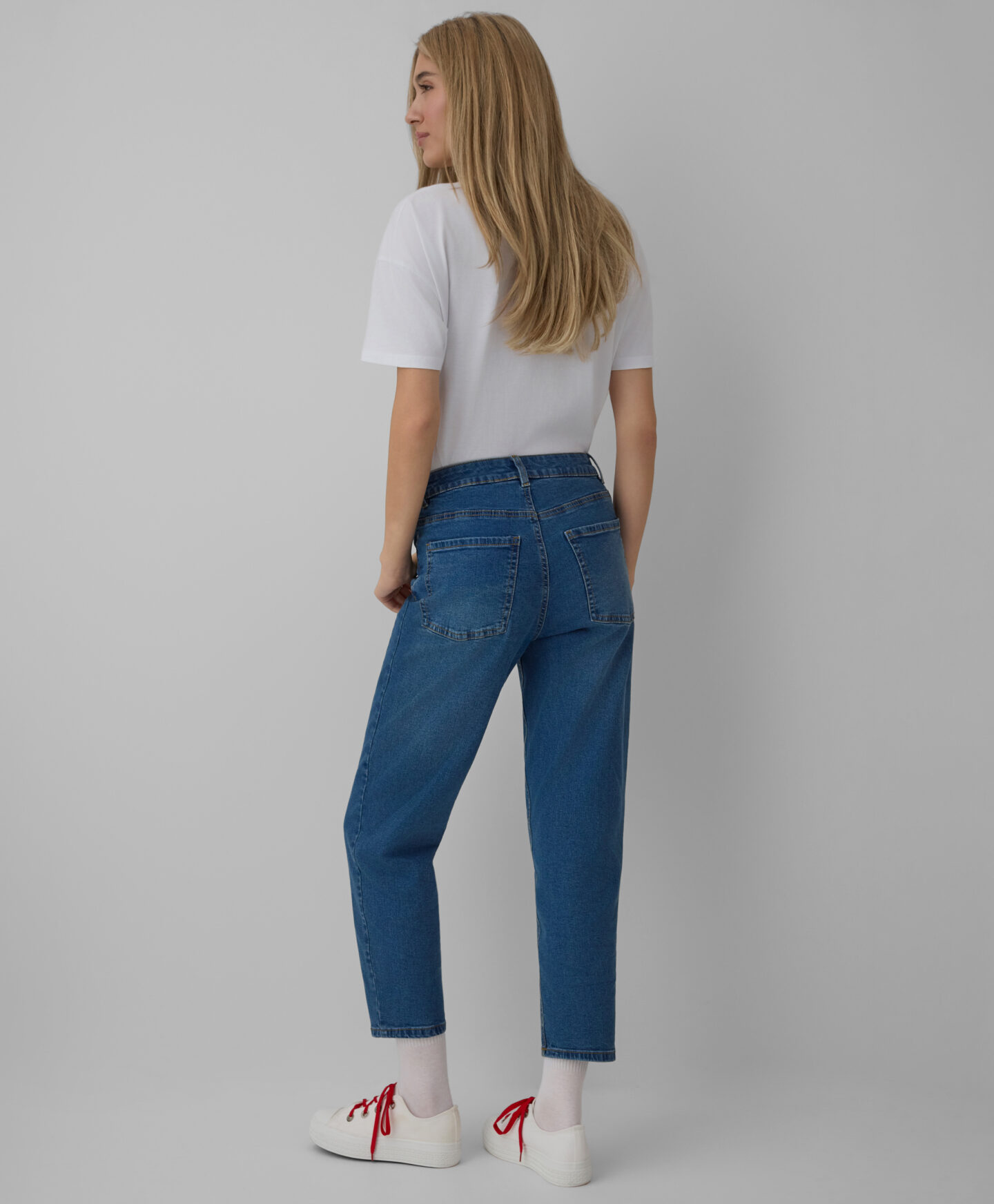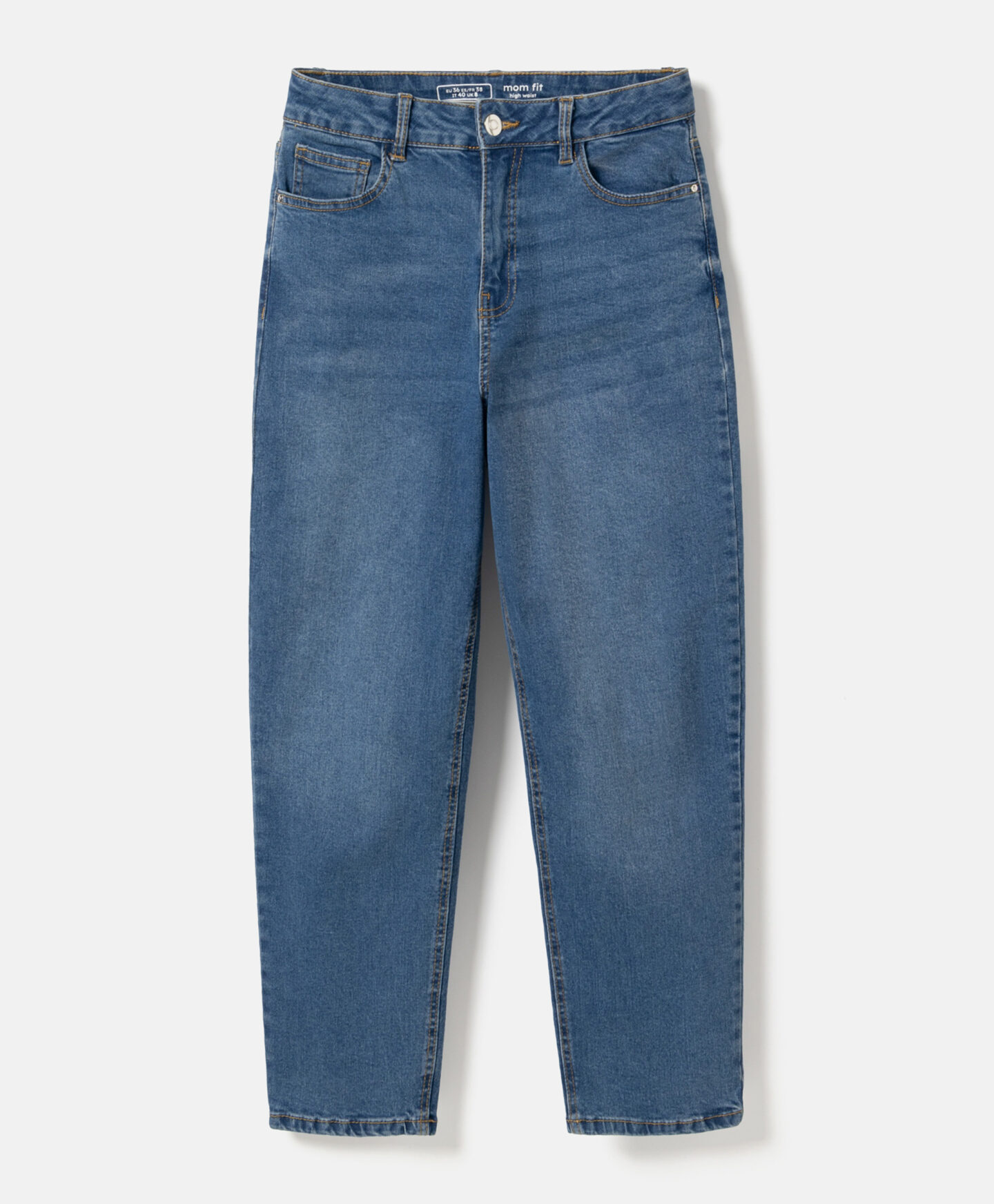 „Mom fit“ modelio džinsai yra nesenstanti klasika, kurioje retro stilius dera su šiuolaikiniu stiliumi. Jų aukštas liemuo pabrėžia figūros privalumus ir kartu suteikia patogumo. Šiek tiek laisvesnės klešnės suteikia laisvalaikio įvaizdį ir nevaržo judesių.