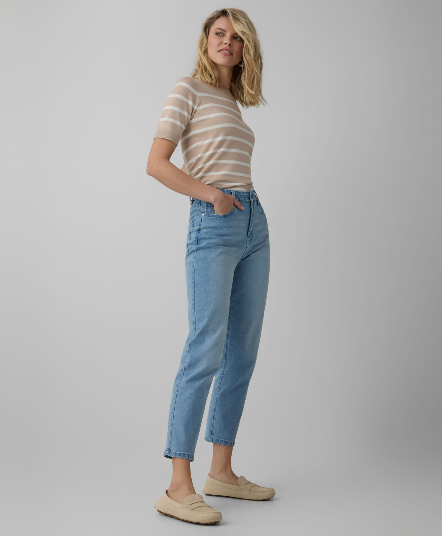 „Mom-cut“ stiliaus džinsai yra amžinas hitas, kuriame patogumas dera su stilingu dizainu. Aukštas liemuo puikiai pabrėžia jūsų figūrą. Laisvas modelis užtikrina patogumą visą dieną ir nevaržo judesių. Džinsai puikiai tiks darbui, laisvalaikio susitikimams ar kasdienei veiklai. Klasikiniai intensyvios mėlynos spalvos džinsai – tai universalumo ir galimybės sukurti daugybę aprangos derinių su mėgstamiausiais garderobo elementais garantija.