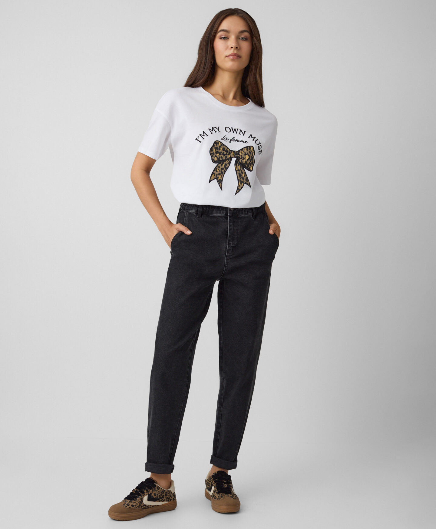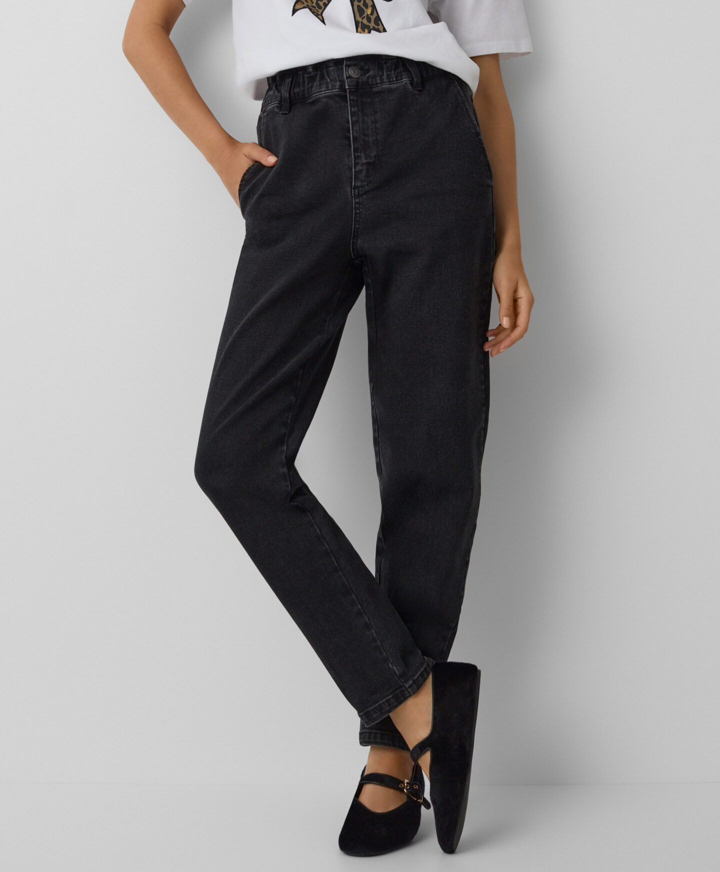 Džinsinės kelnės – idealus pasirinkimas biurui ir laisvalaikiui. Kelnės yra patogios ir puikiai dera su klasikiniais baltais marškinėliais bei trumpesniu megztiniu.