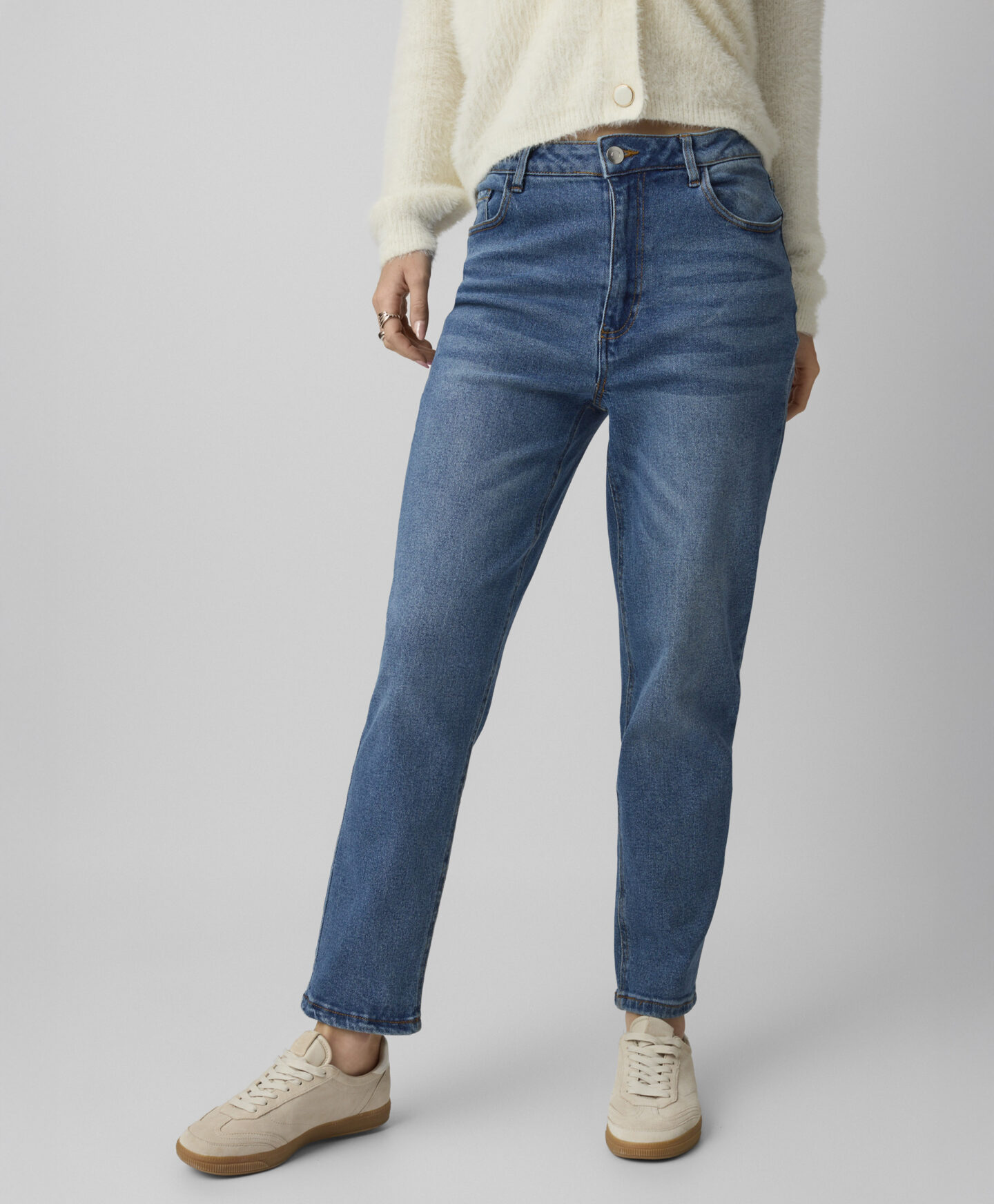 Klasikinės tamsiai mėlynos spalvos džinsinės kelnės, kurių sudėtyje yra daug medvilnės. Dėl to jos derės prie daugelio jūsų spintoje esančių marškinėlių ir džemperių. Jos puikiai tinka tiek laisvalaikiui, tiek darbui ar apsipirkimui.