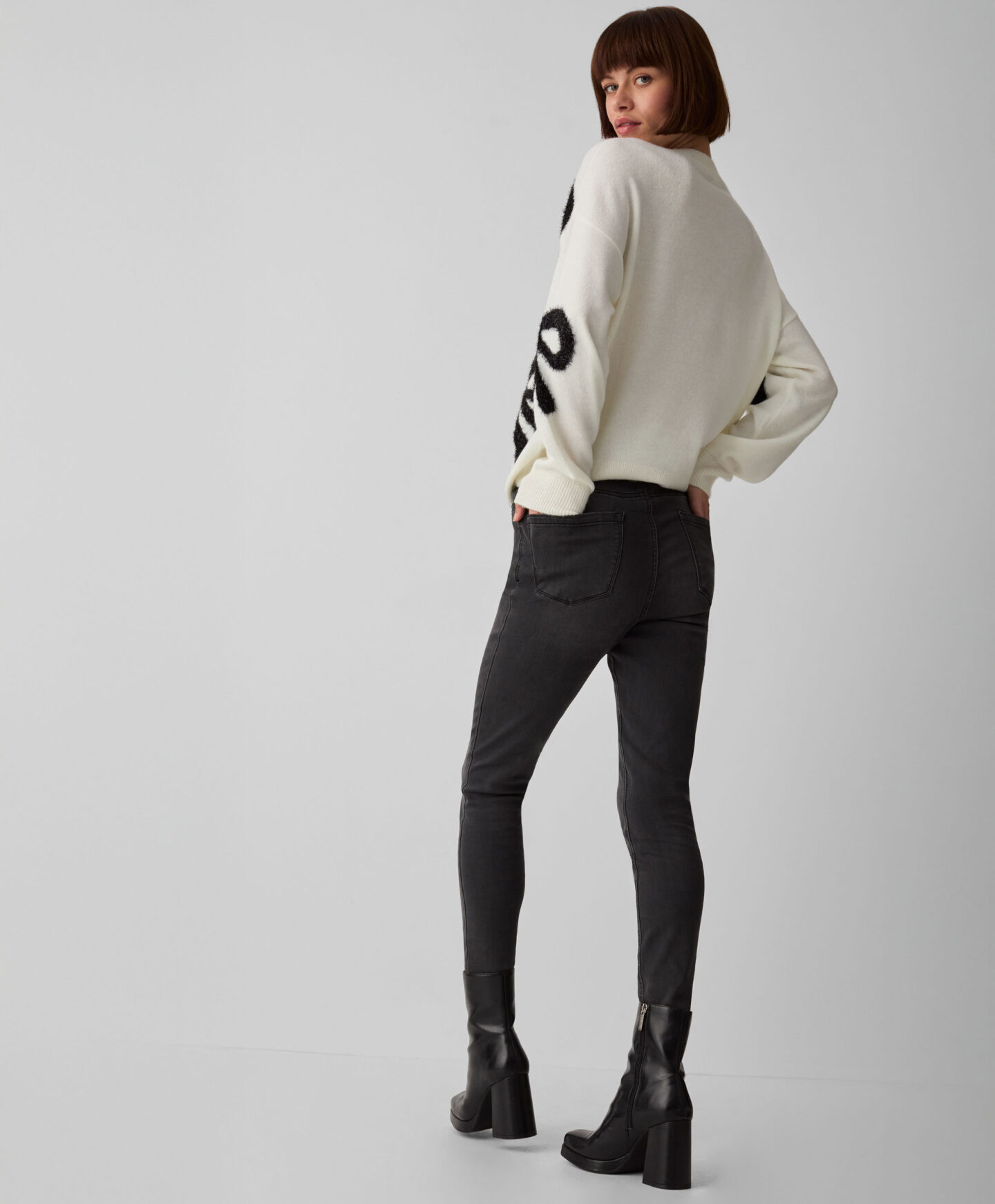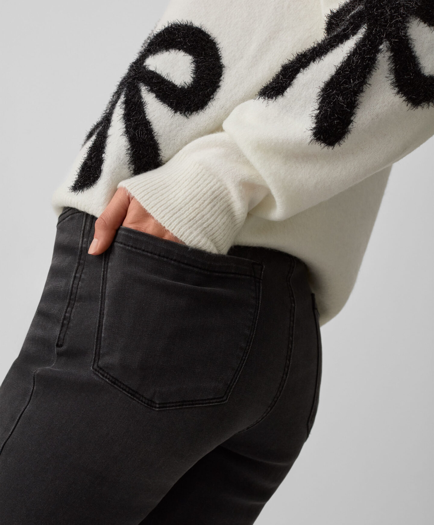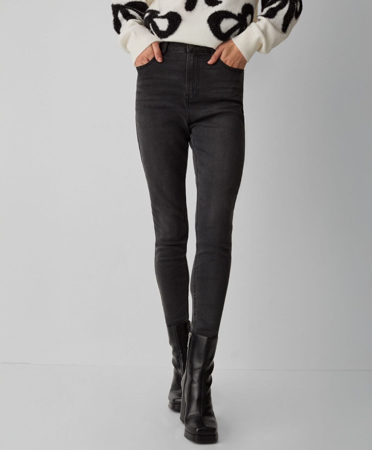 Džinsinės kelnės, pasiūtos iš medvilnės, yra skirtos tiems, kas mėgsta pabrėžti savo figūros privalumus. Elastanas užtikrina puikų prigludimą prie figūros, o pilka spalva paįvairina garderobą. Džinsai puikiai atrodo su megztiniu, džemperiu ar švarkeliu.