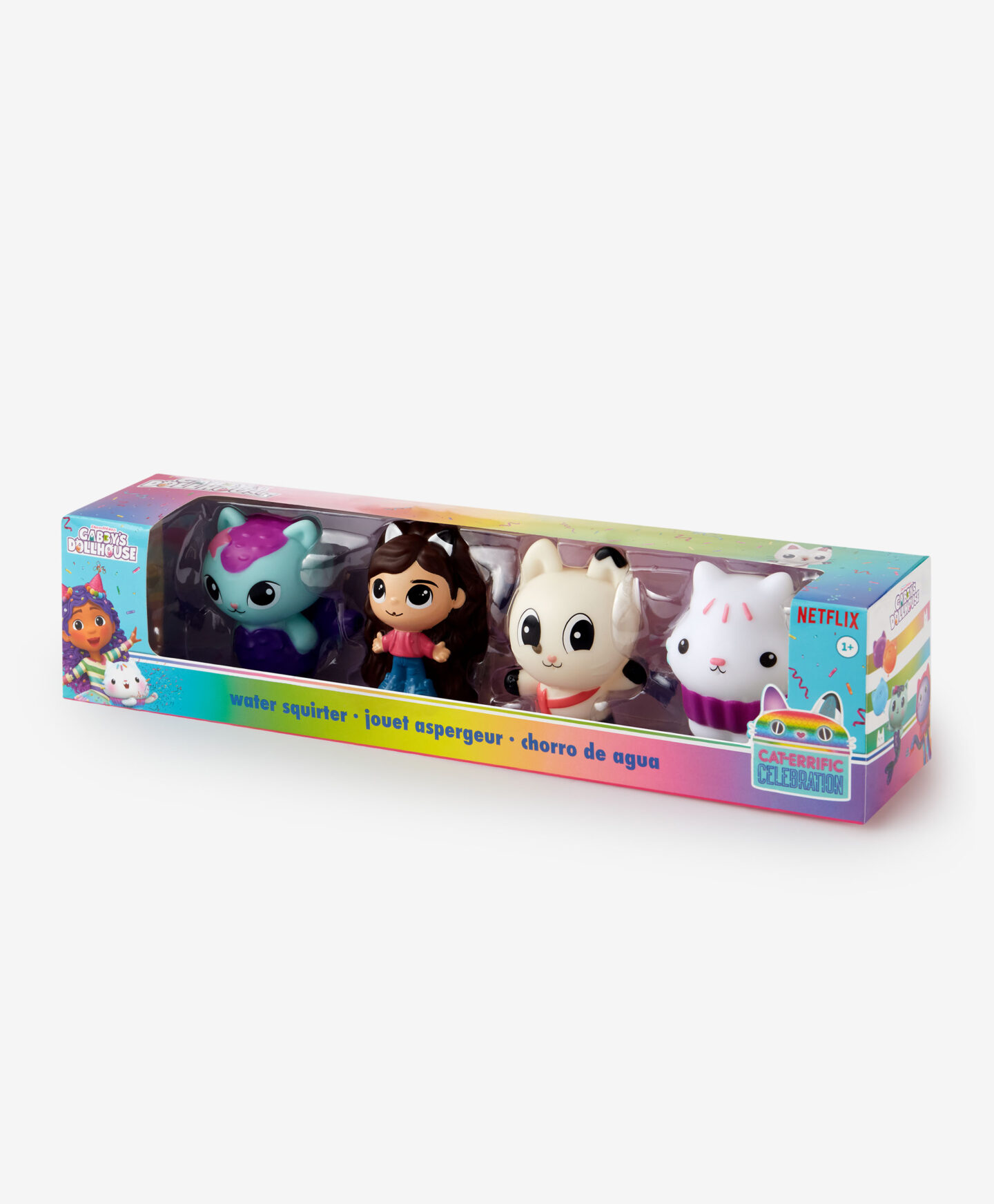 GABBY’S DOLLHOUSE vonios žaislai vaizduoja mėgstamus animacinio filmuko personažus, plūduriuojančius vandenyje. Figūrėlės leidžia smagiai praleisti laiką vonioje ir skatina patirti nuotykių vandens pasaulyje.