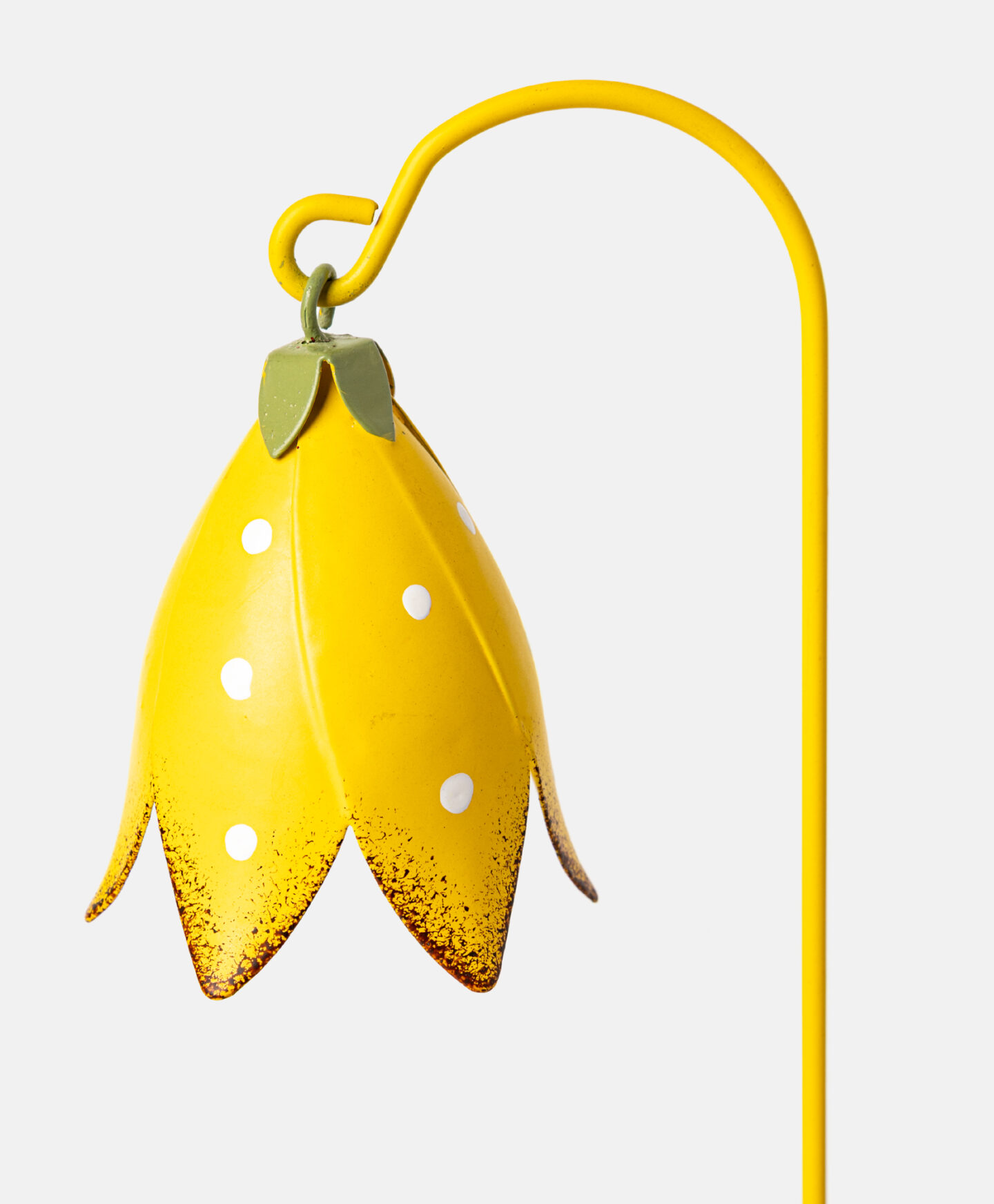 Geltona dekoratyvinė gėlė iš plieno – meniška sodo dekoracija, suteiksianti elegantišką charakterį bet kuriai erdvei. Plienas yra tvirtas, atsparus korozijai, oro sąlygoms, saulei ir lietui. Lengva įsmeigti į žemę, todėl gėlę galima greitai ir saugiai įrengti pasirinktoje sodo vietoje, gėlių lysvėje ar vazonėlyje. Gėlės dizainas yra itin universalus, pati gėlė nereikalauja priežiūros ar laistymo, todėl tai praktiškas sprendimas kiekvienam sodininkui.
