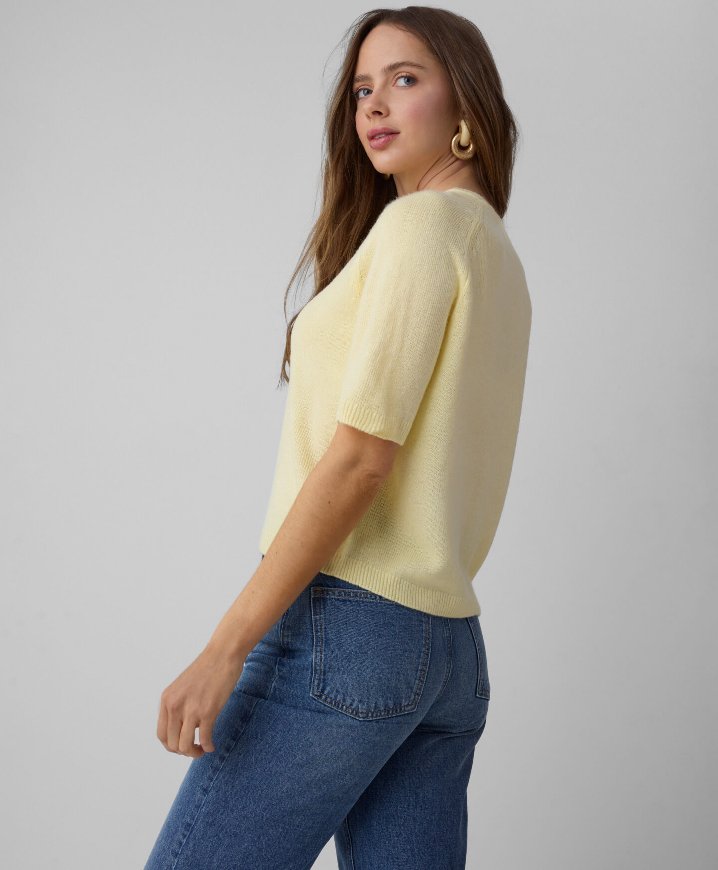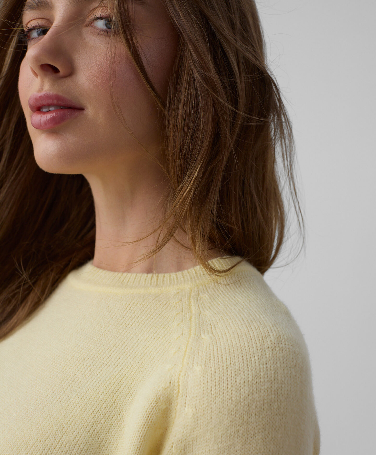 Geltonas megztinis su reglano rankovėmis nevaržo judesių. Jį galite derinti su sijonu, elegantiškomis kelnėmis ar džinsais ir mėgautis stilingu deriniu bet kokioje situacijoje. Galima rinktis iš dviejų spalvų.