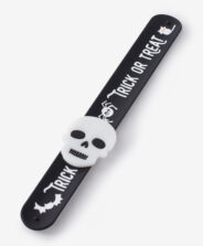 Juoda apyrankė su kaukole yra originalus Helovino aprangos aksesuaras. Apyrankė traukia akį drąsia spalva ir dideliu kaukolės formos elementu, suteikiančiu šiurpumo. Apyrankė greitai užsidedama, nes per sekundę apsivynioja aplink riešą.