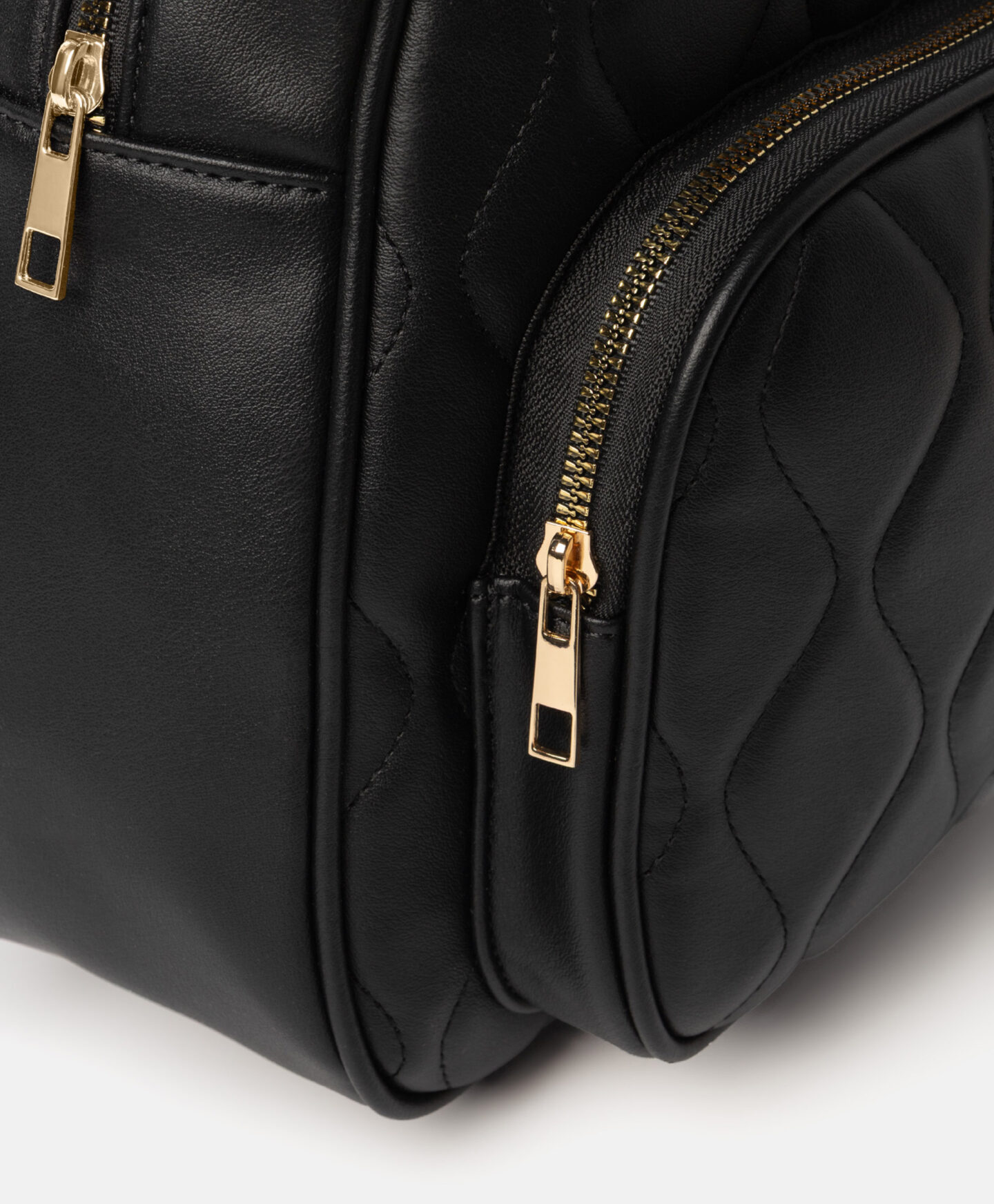 Juoda dygsniuota kuprinė derina komfortą ir eleganciją. Reguliuojami dirželiai leidžia pritaikyti ją pagal savo pageidavimus, papildomas skyrelis padeda laikyti daiktus tvarkingai.