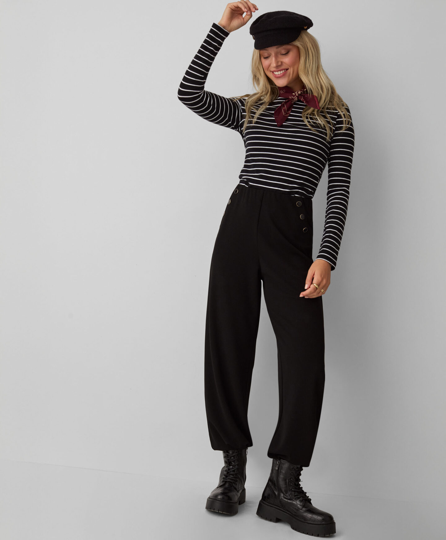 Juodi dryžuoti marškinėliai ilgomis rankovėmis puikiai dera su klasikiniais džinsais. Jie lengvi, minkšti liesti ir pralaidūs orui. Tai bus puikus pasirinkimas ir darbui, ir poilsiui patogiai įsitaisius namuose. Galima rinktis iš kelių spalvų.