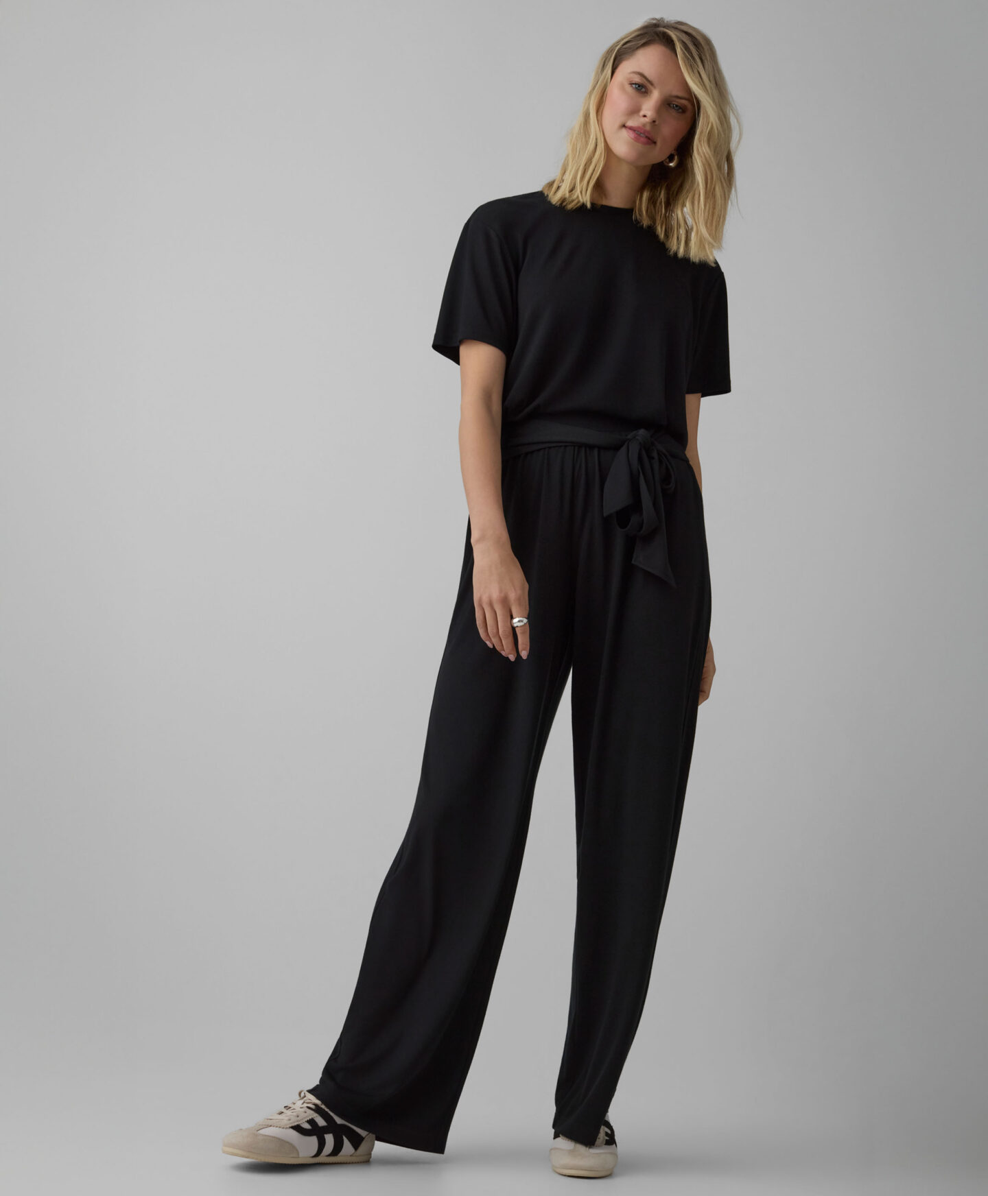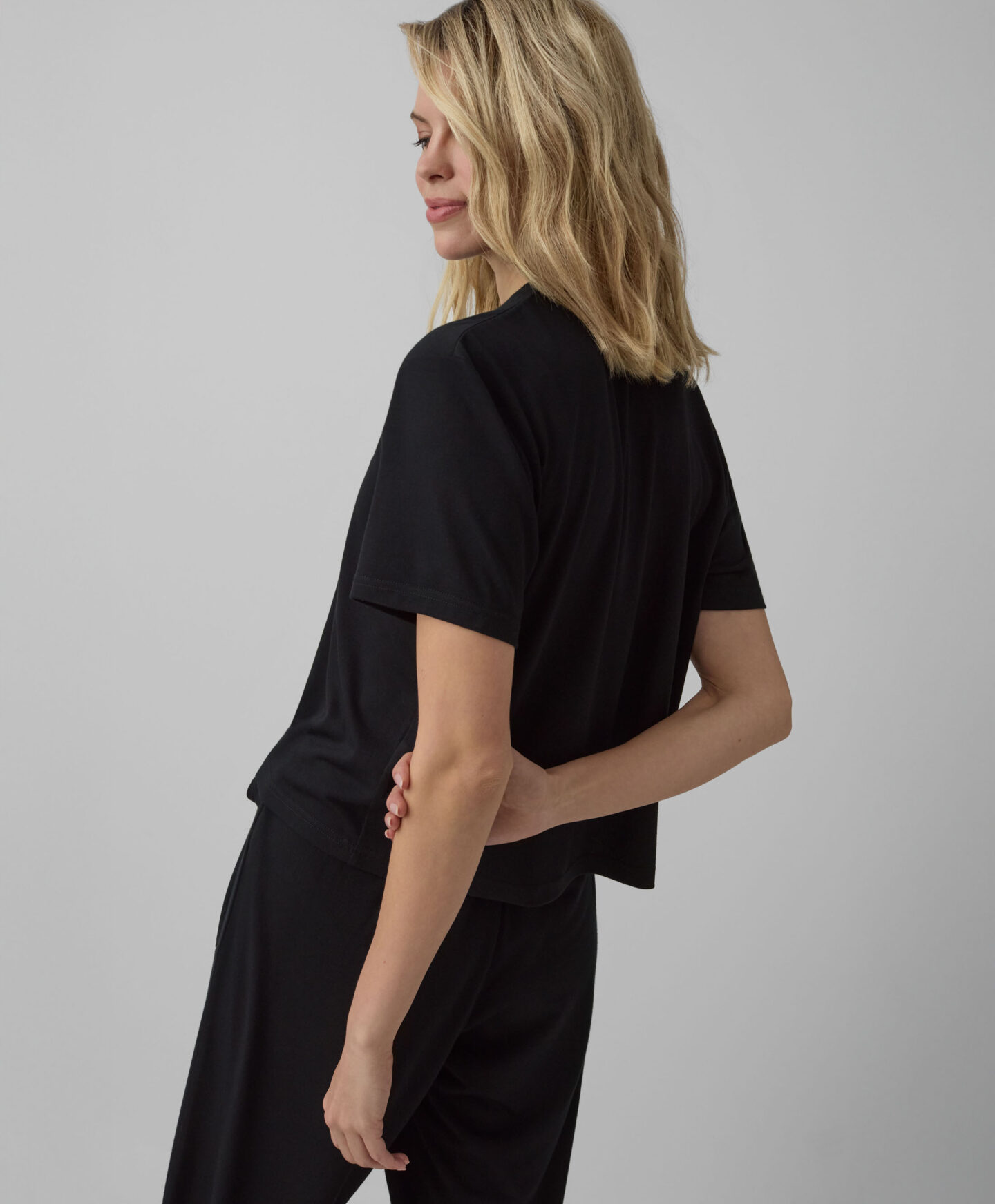 Juodi marškinėliai trumpomis rankovėmis sudaro komplektą su kelnėmis su raišteliu, tačiau puikiai derės ir prie kitų jūsų drabužių. Visa tai dėl klasikinio modelio ir nesenstančių spalvų, kurios niekada neišeina iš mados. Medžiaga su viskoze yra lengva ir maloni liesti. Marškinėliai užtikrins komfortą visą dieną. Galima rinktis iš dviejų dizainų.