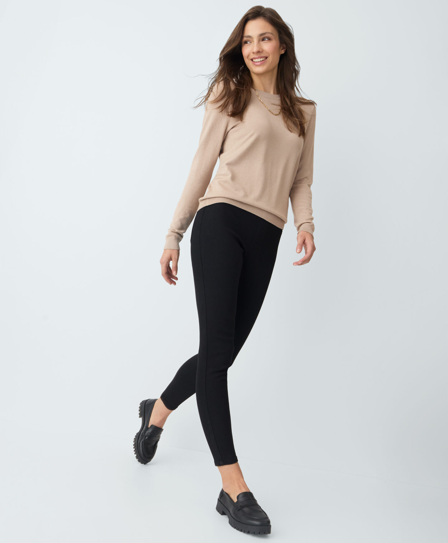 Juodi tamprių stiliaus džinsai – tai tamprių patogumas ir klasikinių džinsų dizainas. Jie yra elastingi, todėl puikiai prisitaiko prie figūros. Jie puikiai tinka dėvėti kasdien, nes yra ir stilingos, ir patogios. Jie universalūs – tinka įvairiems stiliams, tiek klasikiniams, tiek sportiniams. Galima įsigyti ir kitų spalvų.
