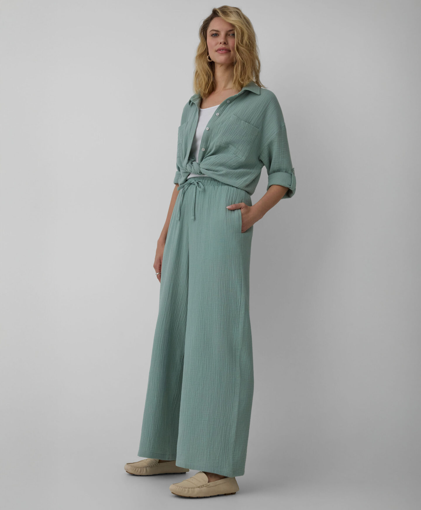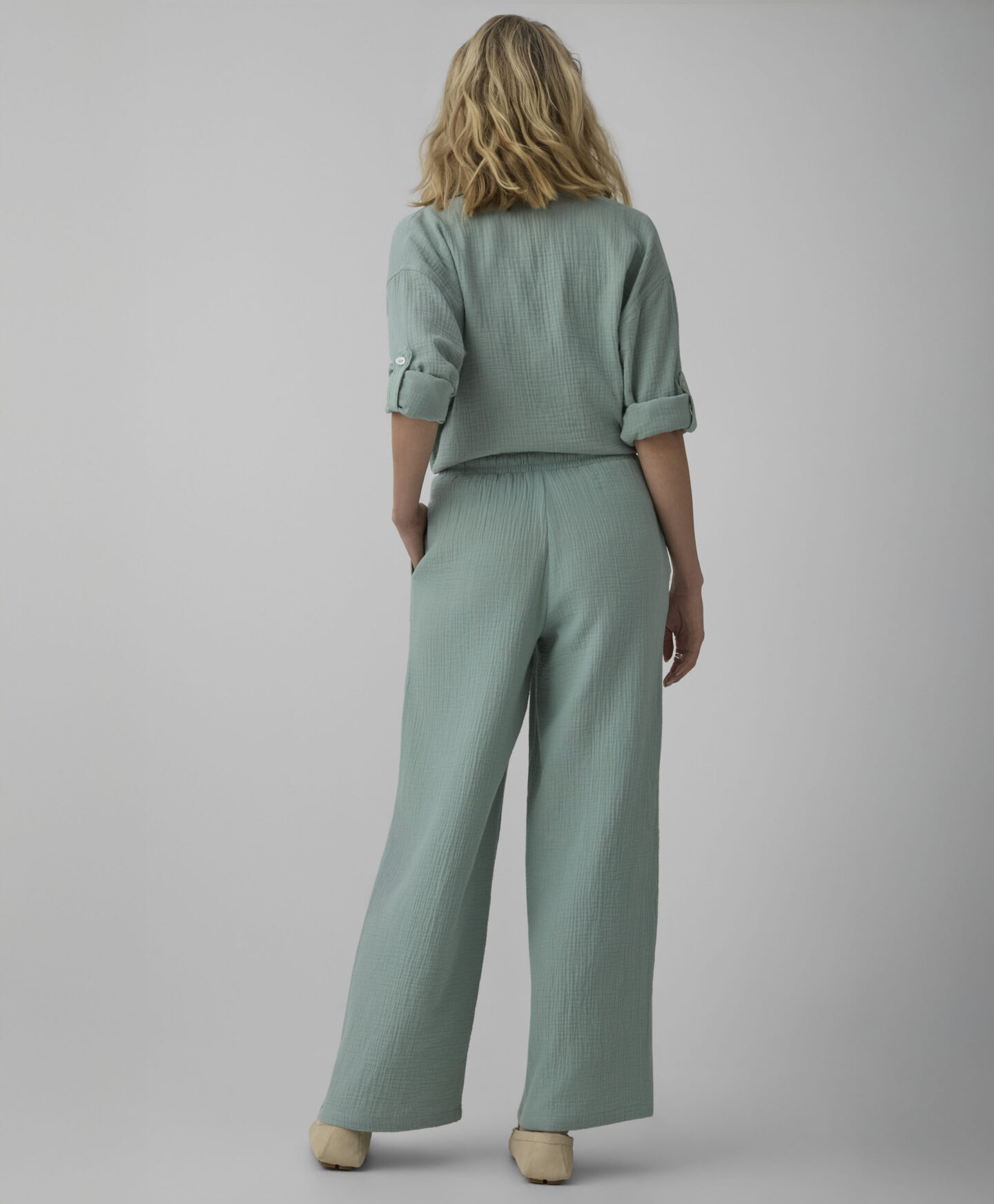 Kelnės, 100 % medvilnės, pasižymi nepaprastu minkštumu, lengvumu ir pralaidumu orui. Tai stilingo komforto sinonimas. Madinga spalva traukia dėmesį ir leidžia kelnėms išsiskirti iš kitų. Jos puikiai tinka tiek pasivaikščiojimui gryname ore, tiek poilsiui namuose. Kolekcijoje taip pat rasite derančių marškinių.