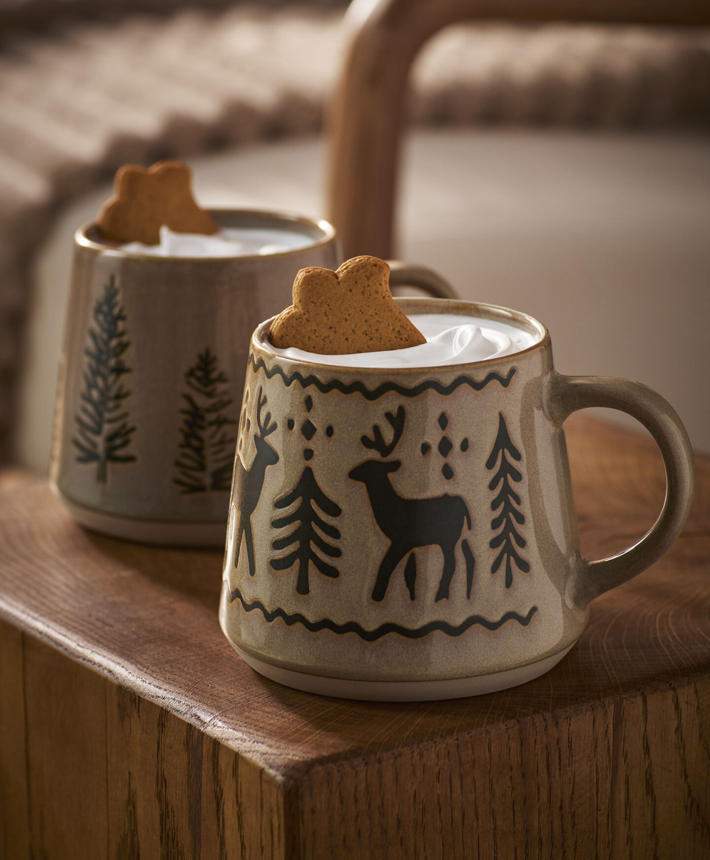 Keraminis puodelis su elnių motyvais ir ąsele pagamintas iš akmens masės, todėl yra patvarus ir atsparus. Puikiai tinka rytinei kavai, arbatai ar karštam šokoladui, todėl galėsite atsipalaiduoti bet kuriuo paros metu. Galima rinktis iš dviejų dizainų.