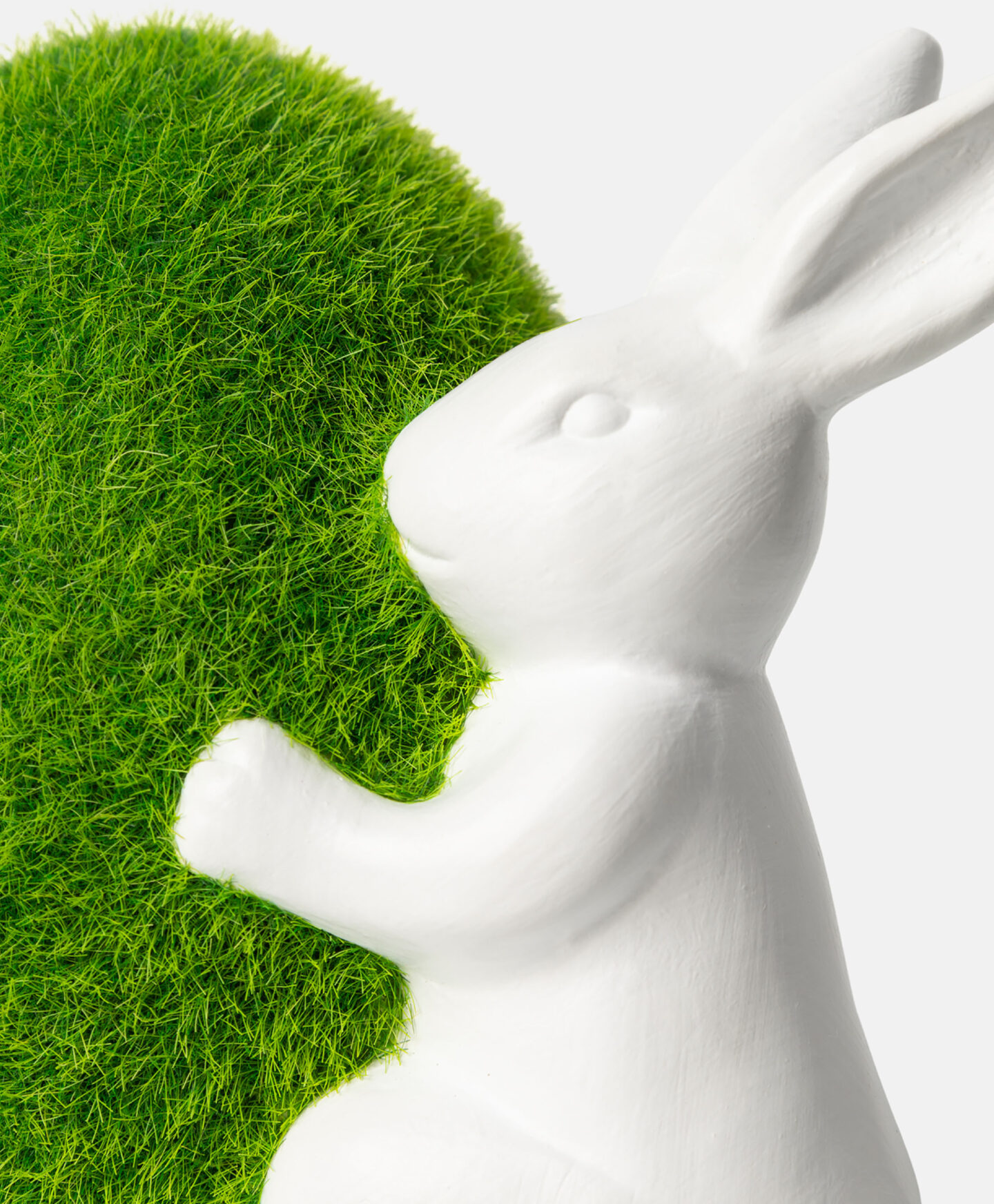Kiškutis su flokuotu kiaušiniu yra elegantiška dekoracija, tinkanti bet kokiai erdvei. Jis padės papuošti stalą, virtuvės stalviršį ar svetainės spintelę. Auksinė spalva gražiai išsiskiria interjere, o flokuotas kiaušinis, dėl savo minkštos, žolę primenančios tekstūros, suteikia gaivumo ir pavasariškos nuotaikos.