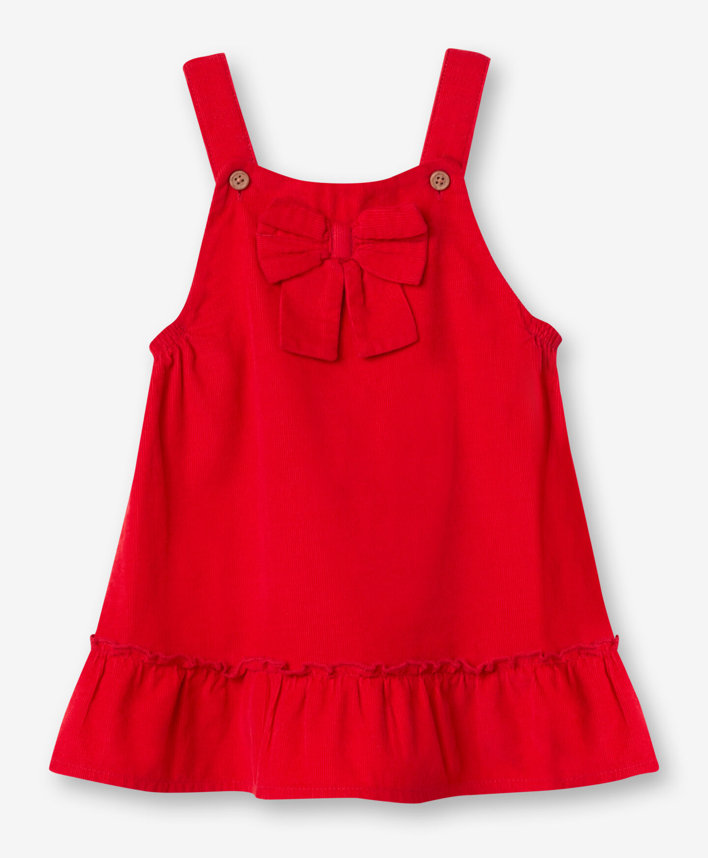 Komplektą mažyliams iš 100 % medvilnės, sudaro kordinio velveto suknelė su sagomis papuoštomis petnešomis ir glaustinukė. Tai rengti paruošta stiliaus idėja mažyliui. Iš natūralaus pluošto pasiūtas komplektas yra patogus, minkštas liesti ir švelnus jautriai odai. Baltos ir raudonos spalvų derinys puikiai dera su artėjančių Kalėdų nuotaika!