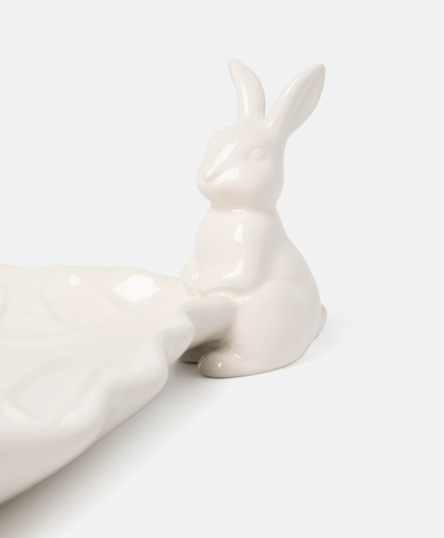 Kopūsto lapo formos lėkštė su 3D kiškučiu – tai unikalus stalo indas. Pagaminta iš įbrėžimams atsparaus dolomito, todėl yra patvari ir lengvai plaunama. Puikiai tinka tiek sūriems, tiek saldiems užkandžiams patiekti, o taip pat gali tapti atskira stalo puošmena. Kolekcijoje rasite daugiau panašaus dizaino prekių.