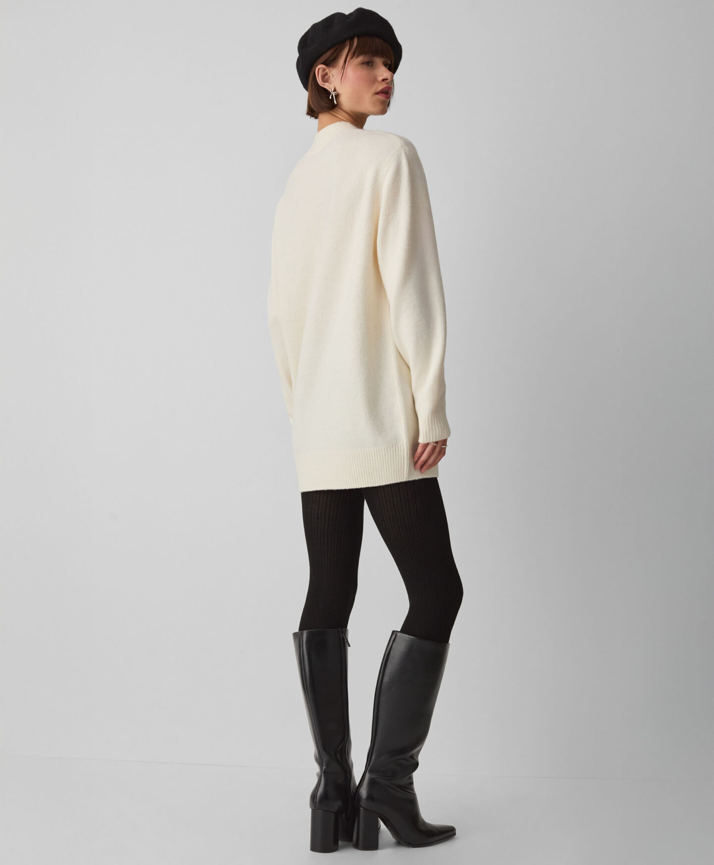 Kreminės spalvos tunika su kaspinėliu ir liureksu puikiai papildys jūsų rudens garderobą. Ji ilga, šilta ir stilinga. Puikiai atrodys su tamprėmis arba storesnėmis pėdkelnėmis. Kartu su aukštakulniais ar aulinukais, tunika puikiai tinka pasivaikščiojimams, darbui biure ar susitikimams su draugais laisvalaikiu.