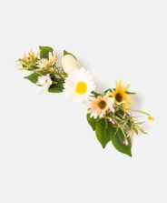 Baltas krepšiui dekoruoti skirtas vainikas – tai paruošta kompozicija, kurią galite uždėti ant pavasariško krepšio rankenos. Jis lengvas, patvarus ir atsparus oro sąlygoms. Tai puiki alternatyva šviežioms gėlėms, kurių šiuo metų laiku gali nebūti. Galimi trys skirtingi dizainai.