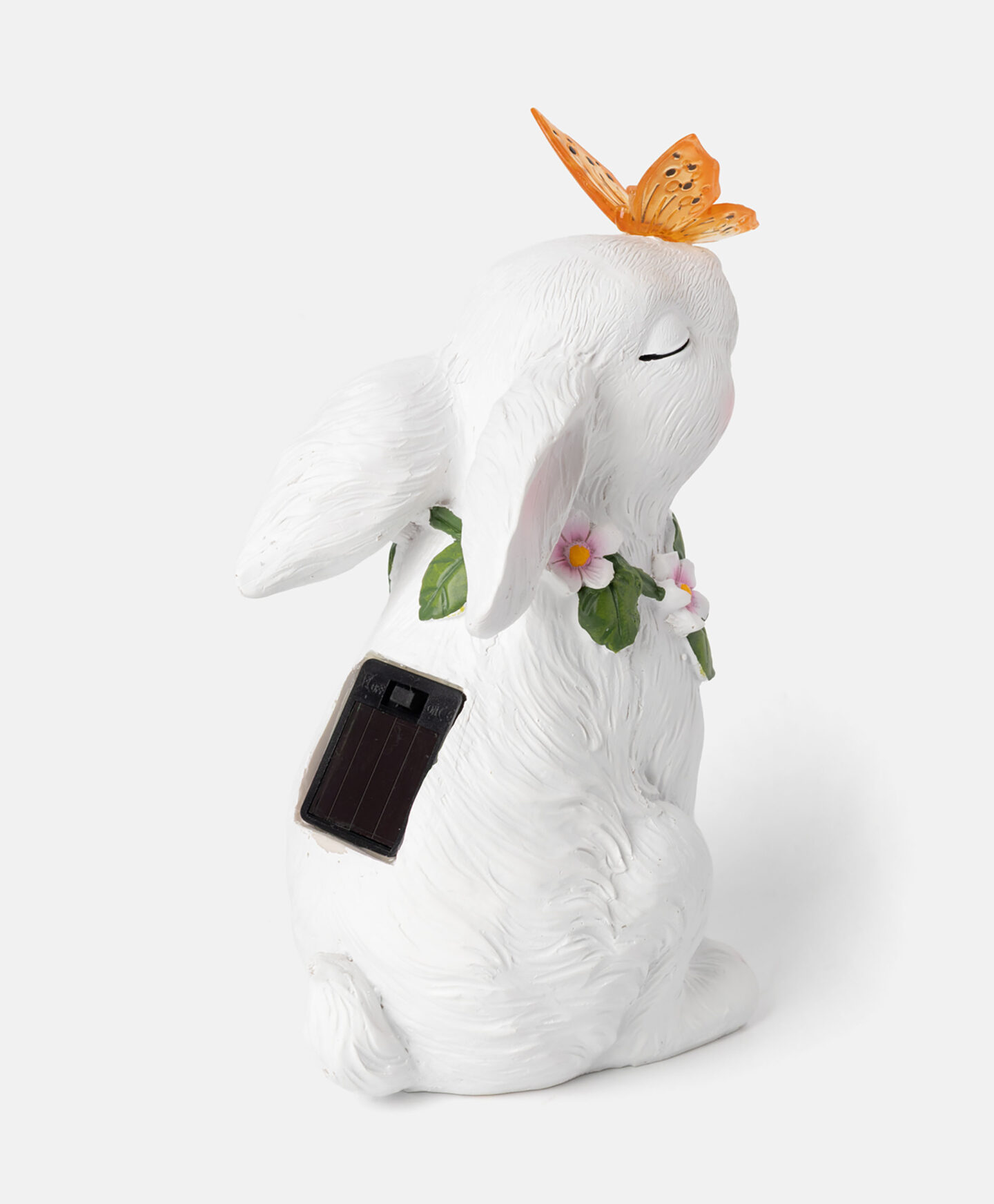 LED kiškutis su drugeliu papuoš jūsų balkoną, terasą ar sodą. Dieną jis džiugina savo pavasarišku dizainu, o sutemus apšviečia erdvę subtiliu švytėjimu. Pagamintas iš patvarių medžiagų, todėl šis kiškutis yra atsparus besikeičiančioms oro sąlygoms.